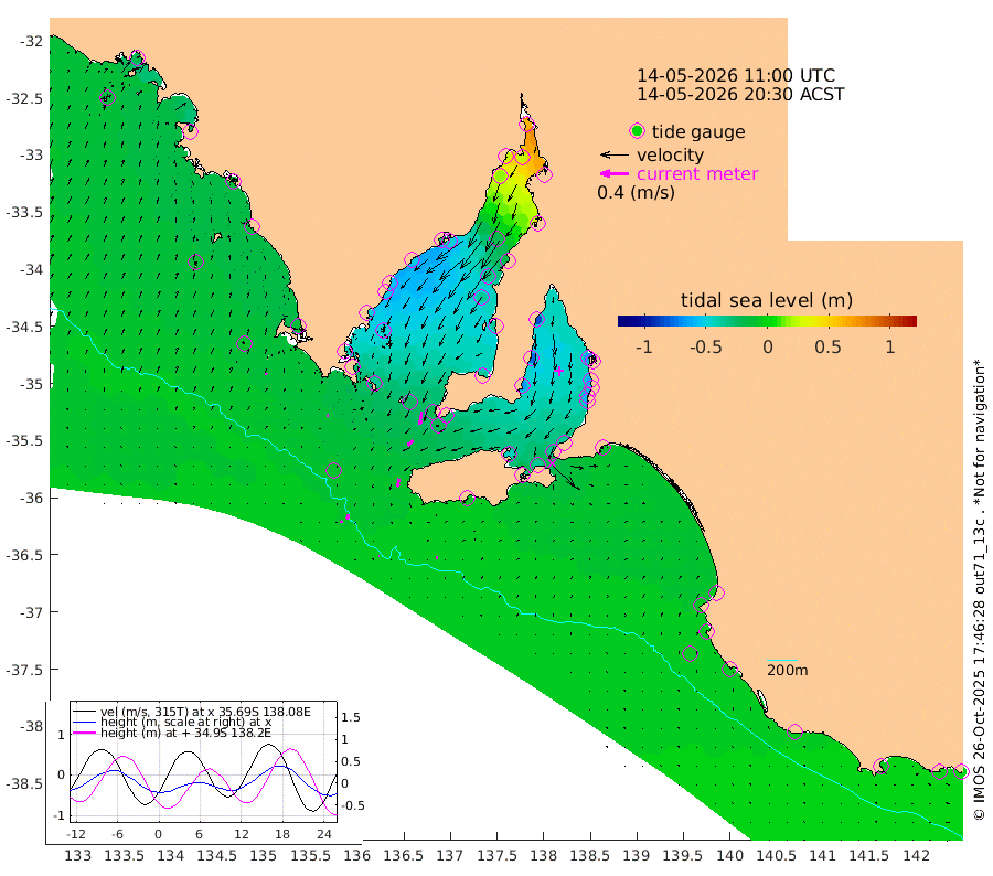 1cm/s -93T +10cm/s rms + 5cm/s 114T. SAM1DS 520m 2cm/s 114T +13cm/s rms + 5cm/s -36T. SAM2CP 100m 6cm/s -172T +21cm/s rms + 18cm/s 142T. SAM3MS 168m 2cm/s -91T +22cm/s rms + 0cm/s -30T. SAM4CY 117m 4cm/s 38T +23cm/s rms + 2cm/s 99T. SAM5CB 94m 10cm/s -132T +8cm/s rms + 3cm/s -172T. SAM6IS 83m 3cm/s -167T +11cm/s rms + 7cm/s 150T. SAM7DS 519m 18cm/s -171T +10cm/s rms + 2cm/s 87T. SAM8SG 47m 12cm/s -168T +20cm/s rms + 12cm/s -168T. NRSKAI 101m -4cm Warrnambool -3cm Port Fairy -5cm Portland -4cm Port Macdonnell -6cm Beachport -6cm Cape Rabelais (off) -7cm Robe -5cm Cape Jaffa -4cm Kingston -12cm Victor Harbor -8cm Vivonne Bay -44cm Kingscote -34cm American River -37cm Penneshaw -35cm Cape Jervis -37cm Second Valley -56cm Port Noarlunga -59cm Port Stanvac -58cm Brighton -61cm Glenelg -65cm Port Adelaide (Outer Harbor) -47cm Angus Inlet (Garden Island) -83cm Ardrossan -78cm Port Vincent -66cm Port Giles -28cm Stenhouse Bay -22cm Althorpe Island -20cm Pondalowie Bay -37cm Point Turton -37cm Port Victoria -34cm Cape Elizabeth -32cm Tiparra Reef Light -18cm Wallaroo -20cm Middle Bank 36cm Port Broughton 50cm Port Pirie 61cm Red Cliff Point (Beacon 5) 26cm Port Bonython 24cm Whyalla 16cm Western Shoal Beacon -25cm Franklin Harbor -48cm Franklin Harbor Entrance Beacon -51cm Arno Bay -56cm Port Neill -49cm Cape Hardy -46cm Tumby Bay -46cm Reevesby Island -40cm Port Lincoln -28cm Taylors Landing -34cm Whalers Bay -25cm Wedge Island Mooring -9cm Shelf Edge Mooring -15cm Coffin Bay Entrance Beacon -11cm Greenly Island -12cm Elliston -13cm Pearson Island -14cm Venus Bay -22cm Blanche Port (Streaky Bay) -21cm Thevenard -17cm St Francis Island
