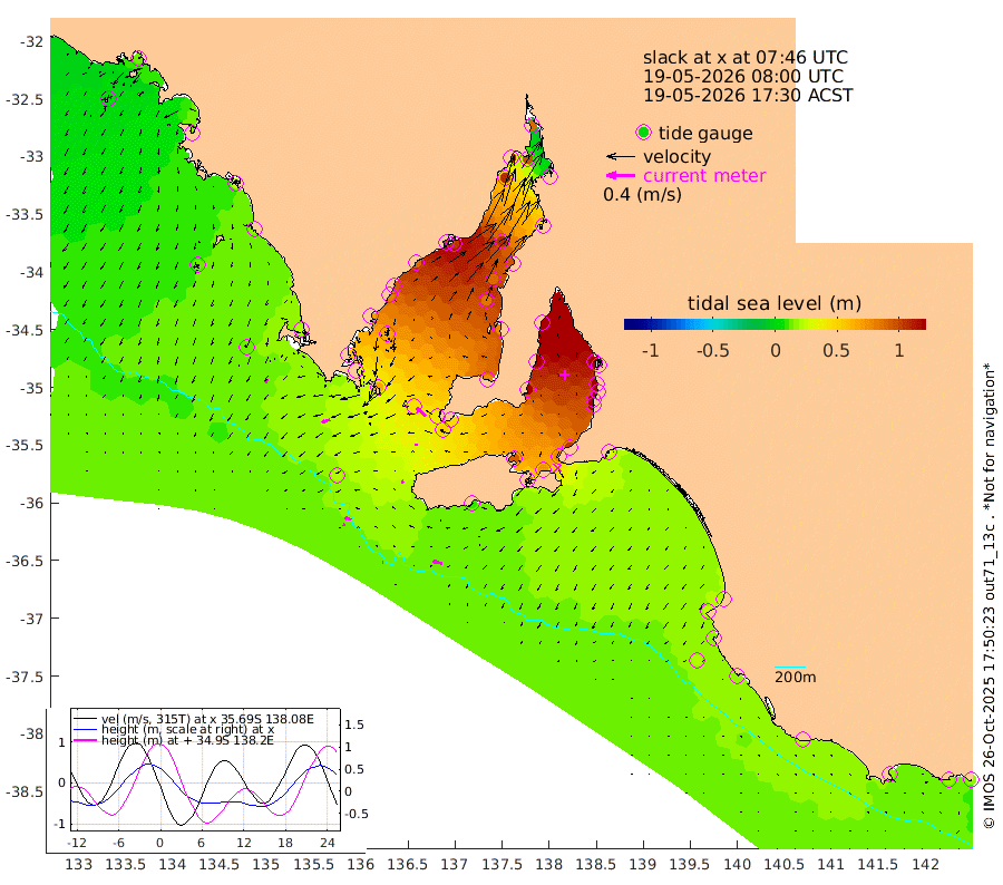 1cm/s -90T +10cm/s rms + 5cm/s 114T. SAM1DS 520m 12cm/s -111T +13cm/s rms + 5cm/s -36T. SAM2CP 100m 9cm/s -73T +21cm/s rms + 18cm/s 142T. SAM3MS 168m 13cm/s -74T +22cm/s rms + 0cm/s -30T. SAM4CY 117m 6cm/s -146T +23cm/s rms + 2cm/s 99T. SAM5CB 94m 4cm/s -83T +8cm/s rms + 3cm/s -172T. SAM6IS 83m 3cm/s -69T +11cm/s rms + 7cm/s 150T. SAM7DS 519m 17cm/s -49T +10cm/s rms + 2cm/s 87T. SAM8SG 47m 4cm/s -20T +20cm/s rms + 12cm/s -168T. NRSKAI 101m 18cm Warrnambool 19cm Port Fairy 18cm Portland 25cm Port Macdonnell 17cm Beachport 19cm Cape Rabelais (off) 18cm Robe 24cm Cape Jaffa 22cm Kingston 27cm Victor Harbor 11cm Vivonne Bay 92cm Kingscote 83cm American River 75cm Penneshaw 78cm Cape Jervis 103cm Second Valley 123cm Port Noarlunga 127cm Port Stanvac 129cm Brighton 134cm Glenelg 142cm Port Adelaide (Outer Harbor) 137cm Angus Inlet (Garden Island) 167cm Ardrossan 145cm Port Vincent 126cm Port Giles 46cm Stenhouse Bay 51cm Althorpe Island 40cm Pondalowie Bay 76cm Point Turton 76cm Port Victoria 83cm Cape Elizabeth 89cm Tiparra Reef Light 97cm Wallaroo 105cm Middle Bank 43cm Port Broughton 86cm Port Pirie 90cm Red Cliff Point (Beacon 5) 96cm Port Bonython 107cm Whyalla 107cm Western Shoal Beacon 103cm Franklin Harbor 105cm Franklin Harbor Entrance Beacon 90cm Arno Bay 91cm Port Neill 79cm Cape Hardy 71cm Tumby Bay 64cm Reevesby Island 54cm Port Lincoln 36cm Taylors Landing 64cm Whalers Bay 43cm Wedge Island Mooring 20cm Shelf Edge Mooring 22cm Coffin Bay Entrance Beacon 14cm Greenly Island 18cm Elliston 12cm Pearson Island 24cm Venus Bay 18cm Blanche Port (Streaky Bay) 13cm Thevenard 7cm St Francis Island