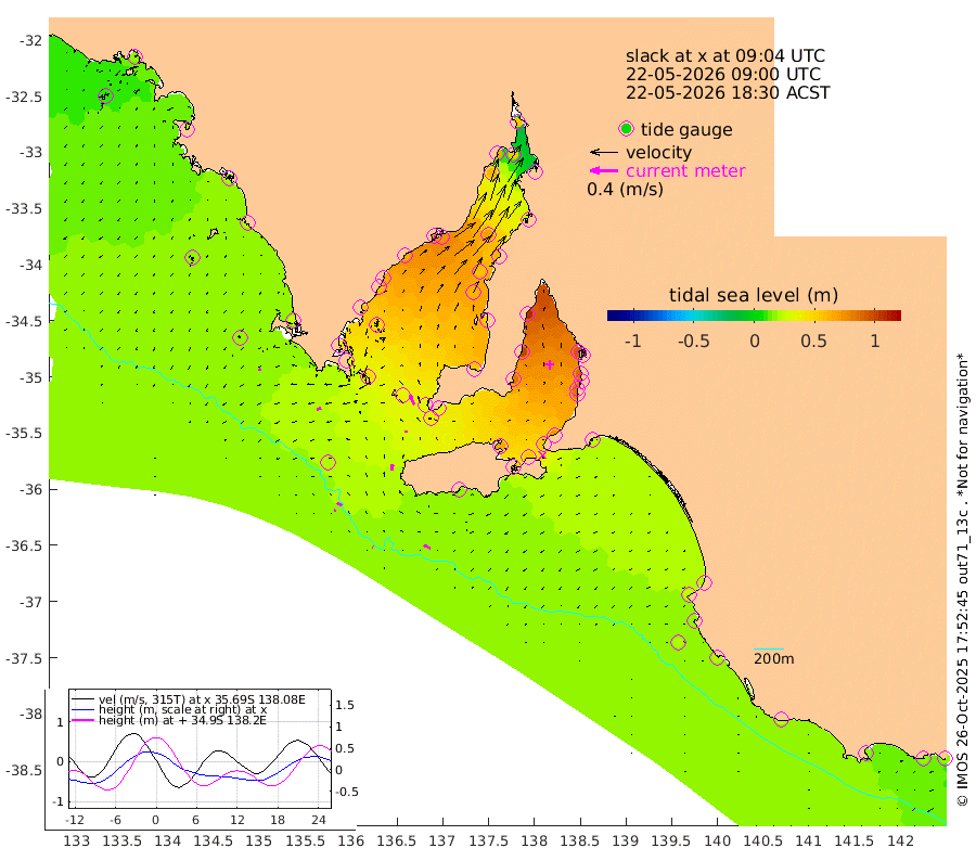 1cm/s -53T +10cm/s rms + 5cm/s 114T. SAM1DS 520m 7cm/s -104T +13cm/s rms + 5cm/s -36T. SAM2CP 100m 8cm/s -63T +21cm/s rms + 18cm/s 142T. SAM3MS 168m 10cm/s -63T +22cm/s rms + 0cm/s -30T. SAM4CY 117m 3cm/s -134T +23cm/s rms + 2cm/s 99T. SAM5CB 94m 3cm/s 5T +8cm/s rms + 3cm/s -172T. SAM6IS 83m 3cm/s -58T +11cm/s rms + 7cm/s 150T. SAM7DS 519m 16cm/s -25T +10cm/s rms + 2cm/s 87T. SAM8SG 47m 8cm/s -1T +20cm/s rms + 12cm/s -168T. NRSKAI 101m 16cm Warrnambool 18cm Port Fairy 18cm Portland 24cm Port Macdonnell 19cm Beachport 20cm Cape Rabelais (off) 18cm Robe 25cm Cape Jaffa 22cm Kingston 26cm Victor Harbor 15cm Vivonne Bay 64cm Kingscote 58cm American River 56cm Penneshaw 54cm Cape Jervis 72cm Second Valley 81cm Port Noarlunga 83cm Port Stanvac 85cm Brighton 88cm Glenelg 93cm Port Adelaide (Outer Harbor) 85cm Angus Inlet (Garden Island) 107cm Ardrossan 100cm Port Vincent 85cm Port Giles 36cm Stenhouse Bay 39cm Althorpe Island 32cm Pondalowie Bay 53cm Point Turton 54cm Port Victoria 62cm Cape Elizabeth 57cm Tiparra Reef Light 61cm Wallaroo 68cm Middle Bank 24cm Port Broughton 49cm Port Pirie 54cm Red Cliff Point (Beacon 5) 56cm Port Bonython 64cm Whyalla 63cm Western Shoal Beacon 70cm Franklin Harbor 74cm Franklin Harbor Entrance Beacon 65cm Arno Bay 67cm Port Neill 60cm Cape Hardy 55cm Tumby Bay 47cm Reevesby Island 43cm Port Lincoln 33cm Taylors Landing 46cm Whalers Bay 36cm Wedge Island Mooring 22cm Shelf Edge Mooring 23cm Coffin Bay Entrance Beacon 18cm Greenly Island 23cm Elliston 18cm Pearson Island 21cm Venus Bay 23cm Blanche Port (Streaky Bay) 18cm Thevenard 8cm St Francis Island