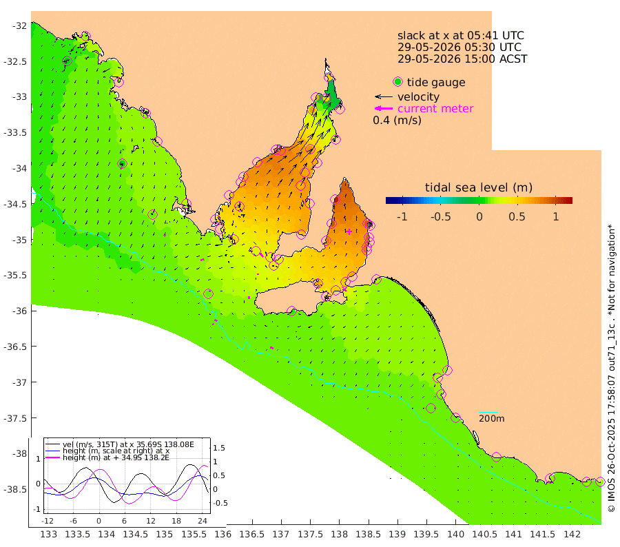 1cm/s -108T +10cm/s rms + 5cm/s 114T. SAM1DS 520m 8cm/s -106T +13cm/s rms + 5cm/s -36T. SAM2CP 100m 7cm/s -61T +21cm/s rms + 18cm/s 142T. SAM3MS 168m 8cm/s -70T +22cm/s rms + 0cm/s -30T. SAM4CY 117m 5cm/s -148T +23cm/s rms + 2cm/s 99T. SAM5CB 94m 2cm/s 11T +8cm/s rms + 3cm/s -172T. SAM6IS 83m 2cm/s -54T +11cm/s rms + 7cm/s 150T. SAM7DS 519m 13cm/s -40T +10cm/s rms + 2cm/s 87T. SAM8SG 47m 5cm/s -9T +20cm/s rms + 12cm/s -168T. NRSKAI 101m 17cm Warrnambool 16cm Port Fairy 16cm Portland 18cm Port Macdonnell 13cm Beachport 14cm Cape Rabelais (off) 16cm Robe 20cm Cape Jaffa 17cm Kingston 21cm Victor Harbor 9cm Vivonne Bay 64cm Kingscote 55cm American River 51cm Penneshaw 53cm Cape Jervis 68cm Second Valley 82cm Port Noarlunga 84cm Port Stanvac 85cm Brighton 87cm Glenelg 94cm Port Adelaide (Outer Harbor) 84cm Angus Inlet (Garden Island) 109cm Ardrossan 94cm Port Vincent 85cm Port Giles 33cm Stenhouse Bay 36cm Althorpe Island 29cm Pondalowie Bay 58cm Point Turton 55cm Port Victoria 61cm Cape Elizabeth 65cm Tiparra Reef Light 67cm Wallaroo 73cm Middle Bank 21cm Port Broughton 48cm Port Pirie 49cm Red Cliff Point (Beacon 5) 50cm Port Bonython 65cm Whyalla 71cm Western Shoal Beacon 76cm Franklin Harbor 80cm Franklin Harbor Entrance Beacon 67cm Arno Bay 66cm Port Neill 61cm Cape Hardy 55cm Tumby Bay 53cm Reevesby Island 43cm Port Lincoln 29cm Taylors Landing 48cm Whalers Bay 33cm Wedge Island Mooring 15cm Shelf Edge Mooring 19cm Coffin Bay Entrance Beacon 12cm Greenly Island 17cm Elliston 6cm Pearson Island 21cm Venus Bay 20cm Blanche Port (Streaky Bay) 16cm Thevenard 6cm St Francis Island