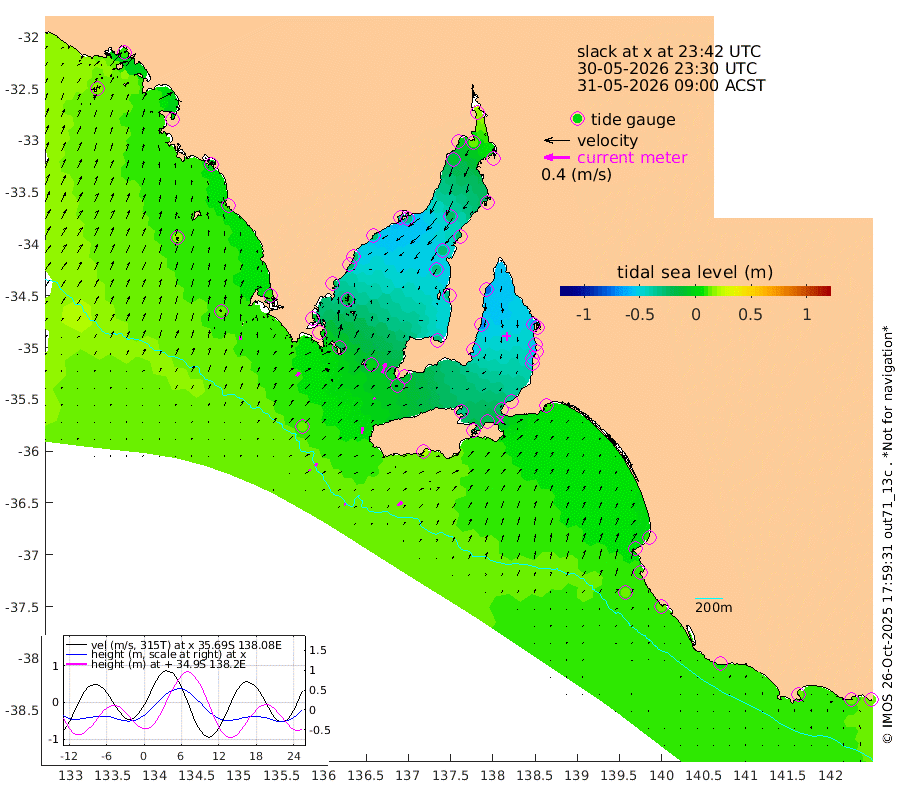 1cm/s 95T +10cm/s rms + 5cm/s 114T. SAM1DS 520m 7cm/s 44T +13cm/s rms + 5cm/s -36T. SAM2CP 100m 4cm/s 18T +21cm/s rms + 18cm/s 142T. SAM3MS 168m 9cm/s 56T +22cm/s rms + 0cm/s -30T. SAM4CY 117m 6cm/s 12T +23cm/s rms + 2cm/s 99T. SAM5CB 94m 2cm/s -20T +8cm/s rms + 3cm/s -172T. SAM6IS 83m 2cm/s -11T +11cm/s rms + 7cm/s 150T. SAM7DS 519m 16cm/s 20T +10cm/s rms + 2cm/s 87T. SAM8SG 47m 10cm/s 10T +20cm/s rms + 12cm/s -168T. NRSKAI 101m 13cm Warrnambool 12cm Port Fairy 13cm Portland 7cm Port Macdonnell 15cm Beachport 14cm Cape Rabelais (off) 10cm Robe 5cm Cape Jaffa 8cm Kingston 10cm Victor Harbor 20cm Vivonne Bay -33cm Kingscote -26cm American River -22cm Penneshaw -23cm Cape Jervis -36cm Second Valley -50cm Port Noarlunga -52cm Port Stanvac -53cm Brighton -56cm Glenelg -60cm Port Adelaide (Outer Harbor) -45cm Angus Inlet (Garden Island) -75cm Ardrossan -69cm Port Vincent -55cm Port Giles -10cm Stenhouse Bay -9cm Althorpe Island -7cm Pondalowie Bay -29cm Point Turton -31cm Port Victoria -33cm Cape Elizabeth -27cm Tiparra Reef Light -26cm Wallaroo -24cm Middle Bank -25cm Port Broughton 10cm Port Pirie 15cm Red Cliff Point (Beacon 5) 13cm Port Bonython -2cm Whyalla -9cm Western Shoal Beacon -40cm Franklin Harbor -33cm Franklin Harbor Entrance Beacon -27cm Arno Bay -27cm Port Neill -24cm Cape Hardy -20cm Tumby Bay -15cm Reevesby Island -10cm Port Lincoln 2cm Taylors Landing -22cm Whalers Bay -4cm Wedge Island Mooring 15cm Shelf Edge Mooring 9cm Coffin Bay Entrance Beacon 15cm Greenly Island 9cm Elliston 17cm Pearson Island -2cm Venus Bay 3cm Blanche Port (Streaky Bay) 9cm Thevenard 16cm St Francis Island