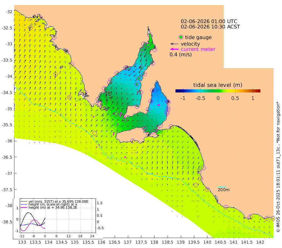 1cm/s 88T +10cm/s rms + 5cm/s 114T. SAM1DS 520m 9cm/s 40T +13cm/s rms + 5cm/s -36T. SAM2CP 100m 6cm/s 20T +21cm/s rms + 18cm/s 142T. SAM3MS 168m 9cm/s 44T +22cm/s rms + 0cm/s -30T. SAM4CY 117m 6cm/s 6T +23cm/s rms + 2cm/s 99T. SAM5CB 94m 7cm/s 27T +8cm/s rms + 3cm/s -172T. SAM6IS 83m 3cm/s -4T +11cm/s rms + 7cm/s 150T. SAM7DS 519m 23cm/s 18T +10cm/s rms + 2cm/s 87T. SAM8SG 47m 16cm/s 10T +20cm/s rms + 12cm/s -168T. NRSKAI 101m 26cm Warrnambool 23cm Port Fairy 25cm Portland 17cm Port Macdonnell 26cm Beachport 26cm Cape Rabelais (off) 23cm Robe 19cm Cape Jaffa 21cm Kingston 23cm Victor Harbor 33cm Vivonne Bay -32cm Kingscote -26cm American River -17cm Penneshaw -22cm Cape Jervis -39cm Second Valley -57cm Port Noarlunga -59cm Port Stanvac -61cm Brighton -65cm Glenelg -72cm Port Adelaide (Outer Harbor) -62cm Angus Inlet (Garden Island) -90cm Ardrossan -79cm Port Vincent -60cm Port Giles 0cm Stenhouse Bay 2cm Althorpe Island 2cm Pondalowie Bay -20cm Point Turton -24cm Port Victoria -27cm Cape Elizabeth -20cm Tiparra Reef Light -23cm Wallaroo -23cm Middle Bank -24cm Port Broughton 2cm Port Pirie 4cm Red Cliff Point (Beacon 5) 1cm Port Bonython -10cm Whyalla -13cm Western Shoal Beacon -42cm Franklin Harbor -26cm Franklin Harbor Entrance Beacon -17cm Arno Bay -14cm Port Neill -9cm Cape Hardy -4cm Tumby Bay -1cm Reevesby Island 5cm Port Lincoln 16cm Taylors Landing -11cm Whalers Bay 9cm Wedge Island Mooring 27cm Shelf Edge Mooring 25cm Coffin Bay Entrance Beacon 28cm Greenly Island 27cm Elliston 32cm Pearson Island 12cm Venus Bay 27cm Blanche Port (Streaky Bay) 32cm Thevenard 37cm St Francis Island