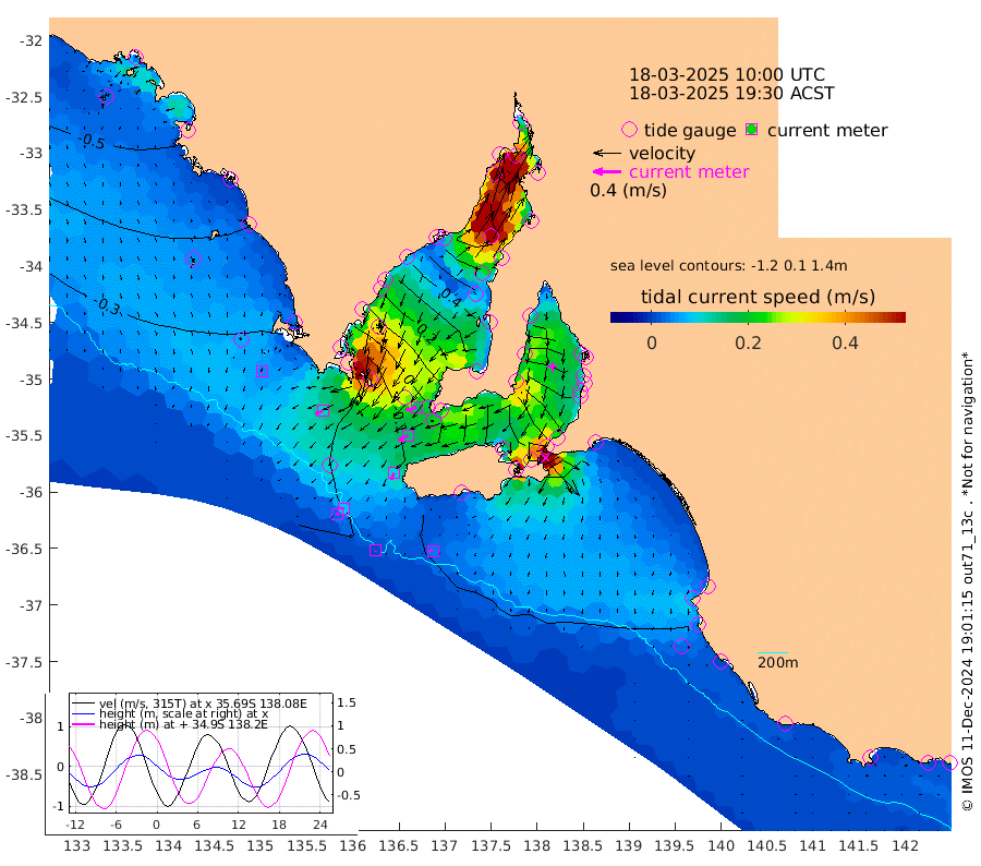 1cm/s -176T +10cm/s rms + 5cm/s 114T. SAM1DS 520m 12cm/s -116T +13cm/s rms + 5cm/s -36T. SAM2CP 100m 8cm/s -82T +21cm/s rms + 18cm/s 142T. SAM3MS 168m 4cm/s -52T +22cm/s rms + 0cm/s -30T. SAM4CY 117m 5cm/s -169T +23cm/s rms + 2cm/s 99T. SAM5CB 94m 15cm/s -117T +8cm/s rms + 3cm/s -172T. SAM6IS 83m 3cm/s -75T +11cm/s rms + 7cm/s 150T. SAM7DS 519m 16cm/s -105T +10cm/s rms + 2cm/s 87T. SAM8SG 47m 10cm/s -156T +20cm/s rms + 12cm/s -168T. NRSKAI 101m -18cm Warrnambool -17cm Port Fairy -17cm Portland -16cm Port Macdonnell -16cm Beachport -19cm Cape Rabelais (off) -18cm Robe -18cm Cape Jaffa -20cm Kingston -14cm Victor Harbor -22cm Vivonne Bay 56cm Kingscote 52cm American River 34cm Penneshaw 48cm Cape Jervis 75cm Second Valley 94cm Port Noarlunga 98cm Port Stanvac 101cm Brighton 102cm Glenelg 117cm Port Adelaide (Outer Harbor) 131cm Angus Inlet (Garden Island) 138cm Ardrossan 104cm Port Vincent 86cm Port Giles -1cm Stenhouse Bay 2cm Althorpe Island -4cm Pondalowie Bay 21cm Point Turton 23cm Port Victoria 35cm Cape Elizabeth 42cm Tiparra Reef Light 63cm Wallaroo 75cm Middle Bank 26cm Port Broughton 108cm Port Pirie 126cm Red Cliff Point (Beacon 5) 110cm Port Bonython 118cm Whyalla 110cm Western Shoal Beacon 71cm Franklin Harbor 49cm Franklin Harbor Entrance Beacon 29cm Arno Bay 17cm Port Neill 13cm Cape Hardy 4cm Tumby Bay 6cm Reevesby Island -9cm Port Lincoln -17cm Taylors Landing 11cm Whalers Bay -6cm Wedge Island Mooring -17cm Shelf Edge Mooring -28cm Coffin Bay Entrance Beacon -25cm Greenly Island -33cm Elliston -37cm Pearson Island -21cm Venus Bay -52cm Blanche Port (Streaky Bay) -54cm Thevenard -51cm St Francis Island