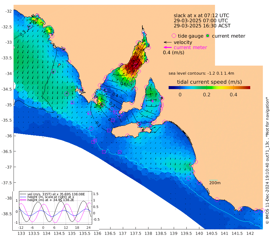 1cm/s 142T +10cm/s rms + 5cm/s 114T. SAM1DS 520m 7cm/s -114T +13cm/s rms + 5cm/s -36T. SAM2CP 100m 4cm/s -17T +21cm/s rms + 18cm/s 142T. SAM3MS 168m 3cm/s 128T +22cm/s rms + 0cm/s -30T. SAM4CY 117m 7cm/s -162T +23cm/s rms + 2cm/s 99T. SAM5CB 94m 1cm/s -77T +8cm/s rms + 3cm/s -172T. SAM6IS 83m 2cm/s 38T +11cm/s rms + 7cm/s 150T. SAM7DS 519m 4cm/s -55T +10cm/s rms + 2cm/s 87T. SAM8SG 47m 1cm/s -32T +20cm/s rms + 12cm/s -168T. NRSKAI 101m -17cm Warrnambool -17cm Port Fairy -18cm Portland -15cm Port Macdonnell -18cm Beachport -19cm Cape Rabelais (off) -17cm Robe -17cm Cape Jaffa -16cm Kingston -11cm Victor Harbor -20cm Vivonne Bay 50cm Kingscote 42cm American River 37cm Penneshaw 40cm Cape Jervis 59cm Second Valley 83cm Port Noarlunga 88cm Port Stanvac 88cm Brighton 93cm Glenelg 103cm Port Adelaide (Outer Harbor) 87cm Angus Inlet (Garden Island) 129cm Ardrossan 110cm Port Vincent 92cm Port Giles 13cm Stenhouse Bay 11cm Althorpe Island 5cm Pondalowie Bay 35cm Point Turton 34cm Port Victoria 39cm Cape Elizabeth 38cm Tiparra Reef Light 29cm Wallaroo 34cm Middle Bank -25cm Port Broughton -27cm Port Pirie -22cm Red Cliff Point (Beacon 5) -8cm Port Bonython 2cm Whyalla 12cm Western Shoal Beacon 49cm Franklin Harbor 56cm Franklin Harbor Entrance Beacon 48cm Arno Bay 51cm Port Neill 39cm Cape Hardy 31cm Tumby Bay 29cm Reevesby Island 19cm Port Lincoln 2cm Taylors Landing 25cm Whalers Bay 5cm Wedge Island Mooring -17cm Shelf Edge Mooring -14cm Coffin Bay Entrance Beacon -20cm Greenly Island -19cm Elliston -26cm Pearson Island -6cm Venus Bay -19cm Blanche Port (Streaky Bay) -21cm Thevenard -28cm St Francis Island