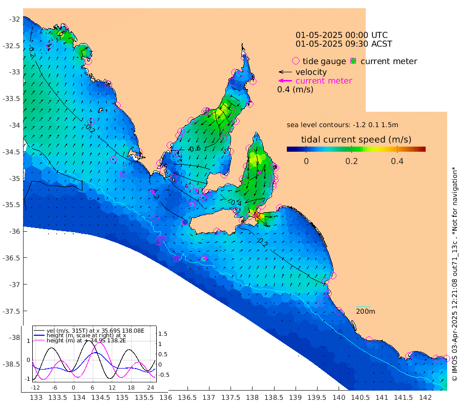 2cm/s 109T +10cm/s rms + 5cm/s 114T. SAM1DS 520m 5cm/s 53T +13cm/s rms + 5cm/s -36T. SAM2CP 100m 3cm/s 21T +21cm/s rms + 18cm/s 142T. SAM3MS 168m 11cm/s 75T +22cm/s rms + 0cm/s -30T. SAM4CY 117m 4cm/s 34T +23cm/s rms + 2cm/s 99T. SAM5CB 94m 7cm/s -104T +8cm/s rms + 3cm/s -172T. SAM6IS 83m 2cm/s -26T +11cm/s rms + 7cm/s 150T. SAM7DS 519m 6cm/s 25T +10cm/s rms + 2cm/s 87T. SAM8SG 47m 0cm/s -109T +20cm/s rms + 12cm/s -168T. NRSKAI 101m -15cm Warrnambool -14cm Port Fairy -15cm Portland -20cm Port Macdonnell -12cm Beachport -15cm Cape Rabelais (off) -18cm Robe -23cm Cape Jaffa -21cm Kingston -19cm Victor Harbor -6cm Vivonne Bay -44cm Kingscote -38cm American River -40cm Penneshaw -33cm Cape Jervis -39cm Second Valley -49cm Port Noarlunga -51cm Port Stanvac -51cm Brighton -55cm Glenelg -54cm Port Adelaide (Outer Harbor) -30cm Angus Inlet (Garden Island) -65cm Ardrossan -71cm Port Vincent -62cm Port Giles -37cm Stenhouse Bay -37cm Althorpe Island -33cm Pondalowie Bay -55cm Point Turton -54cm Port Victoria -53cm Cape Elizabeth -51cm Tiparra Reef Light -40cm Wallaroo -36cm Middle Bank -33cm Port Broughton 17cm Port Pirie 32cm Red Cliff Point (Beacon 5) 16cm Port Bonython 4cm Whyalla -6cm Western Shoal Beacon -50cm Franklin Harbor -56cm Franklin Harbor Entrance Beacon -55cm Arno Bay -62cm Port Neill -55cm Cape Hardy -52cm Tumby Bay -46cm Reevesby Island -45cm Port Lincoln -31cm Taylors Landing -48cm Whalers Bay -33cm Wedge Island Mooring -12cm Shelf Edge Mooring -23cm Coffin Bay Entrance Beacon -12cm Greenly Island -23cm Elliston -14cm Pearson Island -29cm Venus Bay -38cm Blanche Port (Streaky Bay) -31cm Thevenard -18cm St Francis Island