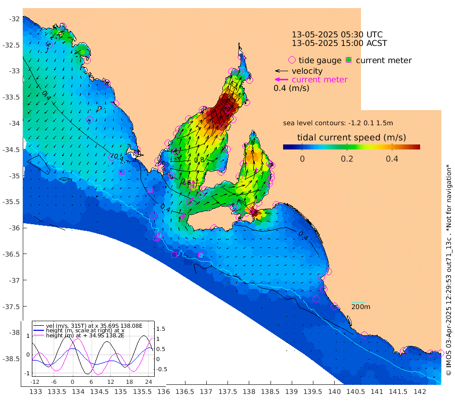 0cm/s -80T +10cm/s rms + 5cm/s 114T. SAM1DS 520m 5cm/s -77T +13cm/s rms + 5cm/s -36T. SAM2CP 100m 8cm/s -21T +21cm/s rms + 18cm/s 142T. SAM3MS 168m 7cm/s -64T +22cm/s rms + 0cm/s -30T. SAM4CY 117m 5cm/s -131T +23cm/s rms + 2cm/s 99T. SAM5CB 94m 17cm/s 48T +8cm/s rms + 3cm/s -172T. SAM6IS 83m 3cm/s -2T +11cm/s rms + 7cm/s 150T. SAM7DS 519m 25cm/s 1T +10cm/s rms + 2cm/s 87T. SAM8SG 47m 20cm/s 9T +20cm/s rms + 12cm/s -168T. NRSKAI 101m 31cm Warrnambool 30cm Port Fairy 31cm Portland 34cm Port Macdonnell 30cm Beachport 32cm Cape Rabelais (off) 33cm Robe 37cm Cape Jaffa 36cm Kingston 42cm Victor Harbor 28cm Vivonne Bay 79cm Kingscote 66cm American River 71cm Penneshaw 62cm Cape Jervis 72cm Second Valley 90cm Port Noarlunga 93cm Port Stanvac 91cm Brighton 95cm Glenelg 99cm Port Adelaide (Outer Harbor) 68cm Angus Inlet (Garden Island) 117cm Ardrossan 124cm Port Vincent 105cm Port Giles 58cm Stenhouse Bay 58cm Althorpe Island 49cm Pondalowie Bay 81cm Point Turton 76cm Port Victoria 82cm Cape Elizabeth 76cm Tiparra Reef Light 59cm Wallaroo 63cm Middle Bank -11cm Port Broughton -22cm Port Pirie -31cm Red Cliff Point (Beacon 5) -3cm Port Bonython 9cm Whyalla 20cm Western Shoal Beacon 78cm Franklin Harbor 101cm Franklin Harbor Entrance Beacon 97cm Arno Bay 107cm Port Neill 95cm Cape Hardy 90cm Tumby Bay 86cm Reevesby Island 79cm Port Lincoln 61cm Taylors Landing 71cm Whalers Bay 58cm Wedge Island Mooring 34cm Shelf Edge Mooring 46cm Coffin Bay Entrance Beacon 33cm Greenly Island 42cm Elliston 33cm Pearson Island 43cm Venus Bay 60cm Blanche Port (Streaky Bay) 54cm Thevenard 38cm St Francis Island