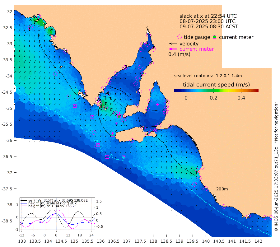 1cm/s 93T +10cm/s rms + 5cm/s 114T. SAM1DS 520m 5cm/s 29T +13cm/s rms + 5cm/s -36T. SAM2CP 100m 6cm/s 3T +21cm/s rms + 18cm/s 142T. SAM3MS 168m 9cm/s 42T +22cm/s rms + 0cm/s -30T. SAM4CY 117m 4cm/s 5T +23cm/s rms + 2cm/s 99T. SAM5CB 94m 4cm/s -17T +8cm/s rms + 3cm/s -172T. SAM6IS 83m 3cm/s -11T +11cm/s rms + 7cm/s 150T. SAM7DS 519m 20cm/s 11T +10cm/s rms + 2cm/s 87T. SAM8SG 47m 13cm/s 9T +20cm/s rms + 12cm/s -168T. NRSKAI 101m 14cm Warrnambool 12cm Port Fairy 14cm Portland 8cm Port Macdonnell 16cm Beachport 15cm Cape Rabelais (off) 13cm Robe 7cm Cape Jaffa 9cm Kingston 13cm Victor Harbor 21cm Vivonne Bay -11cm Kingscote -7cm American River -3cm Penneshaw -4cm Cape Jervis -11cm Second Valley -20cm Port Noarlunga -20cm Port Stanvac -20cm Brighton -22cm Glenelg -24cm Port Adelaide (Outer Harbor) -13cm Angus Inlet (Garden Island) -30cm Ardrossan -34cm Port Vincent -21cm Port Giles 1cm Stenhouse Bay 2cm Althorpe Island 0cm Pondalowie Bay -13cm Point Turton -15cm Port Victoria -16cm Cape Elizabeth -7cm Tiparra Reef Light -7cm Wallaroo -4cm Middle Bank -22cm Port Broughton 16cm Port Pirie 22cm Red Cliff Point (Beacon 5) 22cm Port Bonython 13cm Whyalla 8cm Western Shoal Beacon -22cm Franklin Harbor -10cm Franklin Harbor Entrance Beacon -6cm Arno Bay -6cm Port Neill -4cm Cape Hardy -2cm Tumby Bay -1cm Reevesby Island 3cm Port Lincoln 9cm Taylors Landing -7cm Whalers Bay 5cm Wedge Island Mooring 17cm Shelf Edge Mooring 10cm Coffin Bay Entrance Beacon 15cm Greenly Island 11cm Elliston 15cm Pearson Island 1cm Venus Bay 3cm Blanche Port (Streaky Bay) 7cm Thevenard 13cm St Francis Island