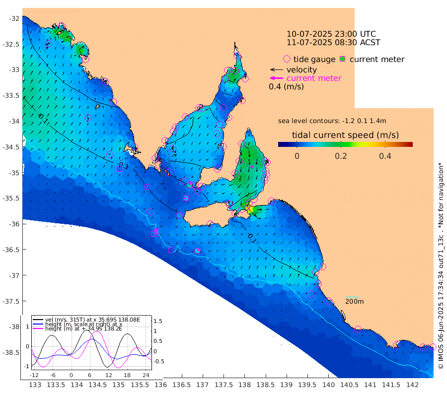 1cm/s 99T +10cm/s rms + 5cm/s 114T. SAM1DS 520m 3cm/s 24T +13cm/s rms + 5cm/s -36T. SAM2CP 100m 5cm/s -5T +21cm/s rms + 18cm/s 142T. SAM3MS 168m 11cm/s 54T +22cm/s rms + 0cm/s -30T. SAM4CY 117m 3cm/s 29T +23cm/s rms + 2cm/s 99T. SAM5CB 94m 7cm/s -93T +8cm/s rms + 3cm/s -172T. SAM6IS 83m 3cm/s -22T +11cm/s rms + 7cm/s 150T. SAM7DS 519m 12cm/s 2T +10cm/s rms + 2cm/s 87T. SAM8SG 47m 6cm/s 2T +20cm/s rms + 12cm/s -168T. NRSKAI 101m -4cm Warrnambool -5cm Port Fairy -4cm Portland -11cm Port Macdonnell -3cm Beachport -5cm Cape Rabelais (off) -7cm Robe -13cm Cape Jaffa -13cm Kingston -7cm Victor Harbor 2cm Vivonne Bay -18cm Kingscote -13cm American River -15cm Penneshaw -9cm Cape Jervis -11cm Second Valley -17cm Port Noarlunga -17cm Port Stanvac -16cm Brighton -19cm Glenelg -16cm Port Adelaide (Outer Harbor) 3cm Angus Inlet (Garden Island) -20cm Ardrossan -40cm Port Vincent -24cm Port Giles -19cm Stenhouse Bay -19cm Althorpe Island -20cm Pondalowie Bay -32cm Point Turton -31cm Port Victoria -30cm Cape Elizabeth -21cm Tiparra Reef Light -12cm Wallaroo -6cm Middle Bank -26cm Port Broughton 35cm Port Pirie 49cm Red Cliff Point (Beacon 5) 33cm Port Bonython 30cm Whyalla 22cm Western Shoal Beacon -26cm Franklin Harbor -24cm Franklin Harbor Entrance Beacon -25cm Arno Bay -34cm Port Neill -26cm Cape Hardy -26cm Tumby Bay -25cm Reevesby Island -24cm Port Lincoln -16cm Taylors Landing -26cm Whalers Bay -18cm Wedge Island Mooring -4cm Shelf Edge Mooring -17cm Coffin Bay Entrance Beacon -6cm Greenly Island -15cm Elliston -12cm Pearson Island -22cm Venus Bay -35cm Blanche Port (Streaky Bay) -29cm Thevenard -17cm St Francis Island