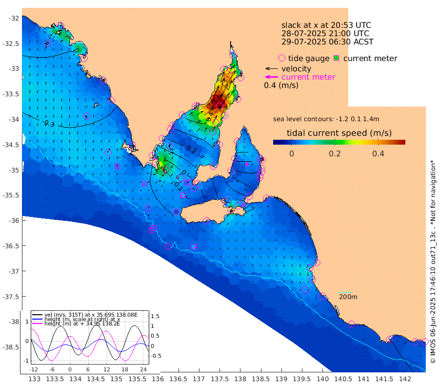 1cm/s 118T +10cm/s rms + 5cm/s 114T. SAM1DS 520m 5cm/s -111T +13cm/s rms + 5cm/s -36T. SAM2CP 100m 3cm/s 3T +21cm/s rms + 18cm/s 142T. SAM3MS 168m 7cm/s 101T +22cm/s rms + 0cm/s -30T. SAM4CY 117m 4cm/s -165T +23cm/s rms + 2cm/s 99T. SAM5CB 94m 7cm/s -119T +8cm/s rms + 3cm/s -172T. SAM6IS 83m 2cm/s 21T +11cm/s rms + 7cm/s 150T. SAM7DS 519m 2cm/s -31T +10cm/s rms + 2cm/s 87T. SAM8SG 47m 1cm/s -160T +20cm/s rms + 12cm/s -168T. NRSKAI 101m -31cm Warrnambool -29cm Port Fairy -28cm Portland -24cm Port Macdonnell -26cm Beachport -28cm Cape Rabelais (off) -25cm Robe -28cm Cape Jaffa -29cm Kingston -21cm Victor Harbor -23cm Vivonne Bay 32cm Kingscote 29cm American River 23cm Penneshaw 28cm Cape Jervis 44cm Second Valley 65cm Port Noarlunga 69cm Port Stanvac 70cm Brighton 72cm Glenelg 84cm Port Adelaide (Outer Harbor) 75cm Angus Inlet (Garden Island) 108cm Ardrossan 84cm Port Vincent 70cm Port Giles 0cm Stenhouse Bay -5cm Althorpe Island -7cm Pondalowie Bay 9cm Point Turton 12cm Port Victoria 13cm Cape Elizabeth 13cm Tiparra Reef Light 8cm Wallaroo 13cm Middle Bank -34cm Port Broughton -30cm Port Pirie -28cm Red Cliff Point (Beacon 5) -17cm Port Bonython -7cm Whyalla 0cm Western Shoal Beacon 20cm Franklin Harbor 25cm Franklin Harbor Entrance Beacon 22cm Arno Bay 16cm Port Neill 15cm Cape Hardy 9cm Tumby Bay 9cm Reevesby Island 1cm Port Lincoln -10cm Taylors Landing 7cm Whalers Bay -9cm Wedge Island Mooring -23cm Shelf Edge Mooring -26cm Coffin Bay Entrance Beacon -24cm Greenly Island -27cm Elliston -28cm Pearson Island -18cm Venus Bay -33cm Blanche Port (Streaky Bay) -33cm Thevenard -34cm St Francis Island