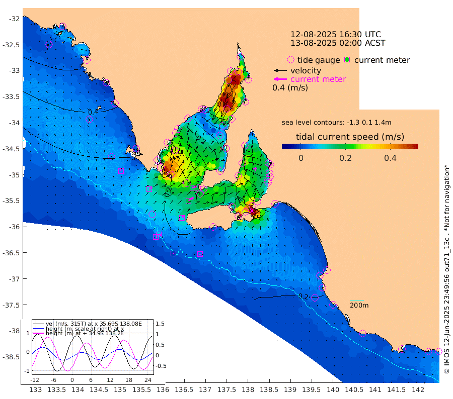 0cm/s 5T +10cm/s rms + 5cm/s 114T. SAM1DS 520m 10cm/s 61T +13cm/s rms + 5cm/s -36T. SAM2CP 100m 7cm/s 109T +21cm/s rms + 18cm/s 142T. SAM3MS 168m 4cm/s 142T +22cm/s rms + 0cm/s -30T. SAM4CY 117m 5cm/s -6T +23cm/s rms + 2cm/s 99T. SAM5CB 94m 17cm/s 57T +8cm/s rms + 3cm/s -172T. SAM6IS 83m 3cm/s 105T +11cm/s rms + 7cm/s 150T. SAM7DS 519m 15cm/s 78T +10cm/s rms + 2cm/s 87T. SAM8SG 47m 9cm/s 28T +20cm/s rms + 12cm/s -168T. NRSKAI 101m 20cm Warrnambool 19cm Port Fairy 20cm Portland 20cm Port Macdonnell 20cm Beachport 23cm Cape Rabelais (off) 23cm Robe 22cm Cape Jaffa 25cm Kingston 18cm Victor Harbor 24cm Vivonne Bay -40cm Kingscote -38cm American River -21cm Penneshaw -35cm Cape Jervis -59cm Second Valley -72cm Port Noarlunga -76cm Port Stanvac -81cm Brighton -79cm Glenelg -93cm Port Adelaide (Outer Harbor) -107cm Angus Inlet (Garden Island) -109cm Ardrossan -75cm Port Vincent -65cm Port Giles 10cm Stenhouse Bay 6cm Althorpe Island 13cm Pondalowie Bay -7cm Point Turton -9cm Port Victoria -22cm Cape Elizabeth -24cm Tiparra Reef Light -44cm Wallaroo -56cm Middle Bank -16cm Port Broughton -86cm Port Pirie -112cm Red Cliff Point (Beacon 5) -87cm Port Bonython -95cm Whyalla -88cm Western Shoal Beacon -51cm Franklin Harbor -34cm Franklin Harbor Entrance Beacon -16cm Arno Bay -5cm Port Neill -3cm Cape Hardy 4cm Tumby Bay 9cm Reevesby Island 18cm Port Lincoln 23cm Taylors Landing 0cm Whalers Bay 15cm Wedge Island Mooring 22cm Shelf Edge Mooring 34cm Coffin Bay Entrance Beacon 29cm Greenly Island 36cm Elliston 40cm Pearson Island 28cm Venus Bay 58cm Blanche Port (Streaky Bay) 58cm Thevenard 50cm St Francis Island