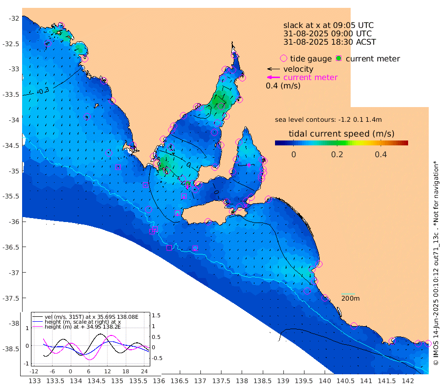 0cm/s 38T +10cm/s rms + 5cm/s 114T. SAM1DS 520m 4cm/s -152T +13cm/s rms + 5cm/s -36T. SAM2CP 100m 4cm/s 140T +21cm/s rms + 18cm/s 142T. SAM3MS 168m 6cm/s -167T +22cm/s rms + 0cm/s -30T. SAM4CY 117m 4cm/s 177T +23cm/s rms + 2cm/s 99T. SAM5CB 94m 6cm/s -174T +8cm/s rms + 3cm/s -172T. SAM6IS 83m 2cm/s 146T +11cm/s rms + 7cm/s 150T. SAM7DS 519m 17cm/s -175T +10cm/s rms + 2cm/s 87T. SAM8SG 47m 10cm/s -172T +20cm/s rms + 12cm/s -168T. NRSKAI 101m -26cm Warrnambool -25cm Port Fairy -26cm Portland -20cm Port Macdonnell -25cm Beachport -26cm Cape Rabelais (off) -24cm Robe -23cm Cape Jaffa -25cm Kingston -25cm Victor Harbor -27cm Vivonne Bay 8cm Kingscote 5cm American River 0cm Penneshaw 2cm Cape Jervis 14cm Second Valley 23cm Port Noarlunga 25cm Port Stanvac 28cm Brighton 28cm Glenelg 32cm Port Adelaide (Outer Harbor) 23cm Angus Inlet (Garden Island) 44cm Ardrossan 33cm Port Vincent 28cm Port Giles -7cm Stenhouse Bay -10cm Althorpe Island -11cm Pondalowie Bay -2cm Point Turton -1cm Port Victoria -1cm Cape Elizabeth -8cm Tiparra Reef Light -11cm Wallaroo -12cm Middle Bank -4cm Port Broughton -43cm Port Pirie -45cm Red Cliff Point (Beacon 5) -40cm Port Bonython -32cm Whyalla -28cm Western Shoal Beacon 4cm Franklin Harbor -2cm Franklin Harbor Entrance Beacon -4cm Arno Bay -5cm Port Neill -8cm Cape Hardy -10cm Tumby Bay -16cm Reevesby Island -15cm Port Lincoln -20cm Taylors Landing -5cm Whalers Bay -17cm Wedge Island Mooring -27cm Shelf Edge Mooring -29cm Coffin Bay Entrance Beacon -28cm Greenly Island -27cm Elliston -30cm Pearson Island -19cm Venus Bay -32cm Blanche Port (Streaky Bay) -34cm Thevenard -31cm St Francis Island