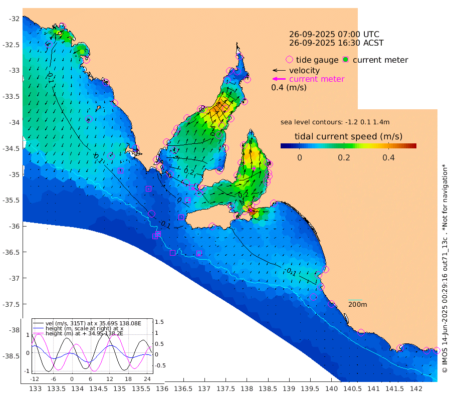 0cm/s -21T +10cm/s rms + 5cm/s 114T. SAM1DS 520m 1cm/s 176T +13cm/s rms + 5cm/s -36T. SAM2CP 100m 5cm/s 77T +21cm/s rms + 18cm/s 142T. SAM3MS 168m 5cm/s 180T +22cm/s rms + 0cm/s -30T. SAM4CY 117m 5cm/s -169T +23cm/s rms + 2cm/s 99T. SAM5CB 94m 7cm/s 88T +8cm/s rms + 3cm/s -172T. SAM6IS 83m 2cm/s 86T +11cm/s rms + 7cm/s 150T. SAM7DS 519m 7cm/s 129T +10cm/s rms + 2cm/s 87T. SAM8SG 47m 2cm/s 43T +20cm/s rms + 12cm/s -168T. NRSKAI 101m -20cm Warrnambool -19cm Port Fairy -18cm Portland -12cm Port Macdonnell -18cm Beachport -17cm Cape Rabelais (off) -14cm Robe -13cm Cape Jaffa -15cm Kingston -13cm Victor Harbor -17cm Vivonne Bay 22cm Kingscote 14cm American River 17cm Penneshaw 14cm Cape Jervis 20cm Second Valley 36cm Port Noarlunga 39cm Port Stanvac 39cm Brighton 42cm Glenelg 45cm Port Adelaide (Outer Harbor) 16cm Angus Inlet (Garden Island) 63cm Ardrossan 61cm Port Vincent 51cm Port Giles 11cm Stenhouse Bay 5cm Althorpe Island 4cm Pondalowie Bay 18cm Point Turton 20cm Port Victoria 17cm Cape Elizabeth 5cm Tiparra Reef Light -15cm Wallaroo -18cm Middle Bank -31cm Port Broughton -108cm Port Pirie -118cm Red Cliff Point (Beacon 5) -93cm Port Bonython -82cm Whyalla -69cm Western Shoal Beacon 4cm Franklin Harbor 19cm Franklin Harbor Entrance Beacon 24cm Arno Bay 30cm Port Neill 25cm Cape Hardy 24cm Tumby Bay 14cm Reevesby Island 16cm Port Lincoln 4cm Taylors Landing 16cm Whalers Bay 2cm Wedge Island Mooring -17cm Shelf Edge Mooring -10cm Coffin Bay Entrance Beacon -15cm Greenly Island -9cm Elliston -12cm Pearson Island -2cm Venus Bay -1cm Blanche Port (Streaky Bay) -4cm Thevenard -8cm St Francis Island