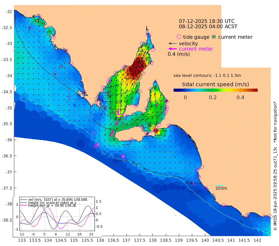 1cm/s -51T +10cm/s rms + 5cm/s 114T. SAM1DS 520m 6cm/s -81T +13cm/s rms + 5cm/s -36T. SAM2CP 100m 10cm/s -37T +21cm/s rms + 18cm/s 142T. SAM3MS 168m 12cm/s -61T +22cm/s rms + 0cm/s -30T. SAM4CY 117m 4cm/s -120T +23cm/s rms + 2cm/s 99T. SAM5CB 94m 16cm/s 43T +8cm/s rms + 3cm/s -172T. SAM6IS 83m 4cm/s -29T +11cm/s rms + 7cm/s 150T. SAM7DS 519m 29cm/s -4T +10cm/s rms + 2cm/s 87T. SAM8SG 47m 21cm/s 7T +20cm/s rms + 12cm/s -168T. NRSKAI 101m 39cm Warrnambool 39cm Port Fairy 40cm Portland 46cm Port Macdonnell 40cm Beachport 43cm Cape Rabelais (off) 42cm Robe 50cm Cape Jaffa 46cm Kingston 52cm Victor Harbor 37cm Vivonne Bay 85cm Kingscote 72cm American River 78cm Penneshaw 69cm Cape Jervis 81cm Second Valley 94cm Port Noarlunga 96cm Port Stanvac 96cm Brighton 100cm Glenelg 101cm Port Adelaide (Outer Harbor) 76cm Angus Inlet (Garden Island) 118cm Ardrossan 120cm Port Vincent 106cm Port Giles 65cm Stenhouse Bay 66cm Althorpe Island 57cm Pondalowie Bay 85cm Point Turton 83cm Port Victoria 88cm Cape Elizabeth 83cm Tiparra Reef Light 73cm Wallaroo 79cm Middle Bank 11cm Port Broughton 13cm Port Pirie 6cm Red Cliff Point (Beacon 5) 25cm Port Bonython 39cm Whyalla 46cm Western Shoal Beacon 85cm Franklin Harbor 109cm Franklin Harbor Entrance Beacon 103cm Arno Bay 111cm Port Neill 101cm Cape Hardy 98cm Tumby Bay 88cm Reevesby Island 85cm Port Lincoln 69cm Taylors Landing 78cm Whalers Bay 67cm Wedge Island Mooring 45cm Shelf Edge Mooring 55cm Coffin Bay Entrance Beacon 44cm Greenly Island 54cm Elliston 45cm Pearson Island 49cm Venus Bay 68cm Blanche Port (Streaky Bay) 63cm Thevenard 44cm St Francis Island