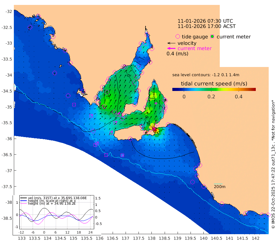 1cm/s 81T +10cm/s rms + 5cm/s 114T. SAM1DS 520m 6cm/s 54T +13cm/s rms + 5cm/s -36T. SAM2CP 100m 5cm/s 44T +21cm/s rms + 18cm/s 142T. SAM3MS 168m 5cm/s 86T +22cm/s rms + 0cm/s -30T. SAM4CY 117m 1cm/s -22T +23cm/s rms + 2cm/s 99T. SAM5CB 94m 12cm/s 52T +8cm/s rms + 3cm/s -172T. SAM6IS 83m 3cm/s 43T +11cm/s rms + 7cm/s 150T. SAM7DS 519m 17cm/s 41T +10cm/s rms + 2cm/s 87T. SAM8SG 47m 13cm/s 18T +20cm/s rms + 12cm/s -168T. NRSKAI 101m 10cm Warrnambool 11cm Port Fairy 11cm Portland 12cm Port Macdonnell 12cm Beachport 11cm Cape Rabelais (off) 11cm Robe 9cm Cape Jaffa 11cm Kingston 11cm Victor Harbor 14cm Vivonne Bay -6cm Kingscote -8cm American River 5cm Penneshaw -5cm Cape Jervis -14cm Second Valley -15cm Port Noarlunga -15cm Port Stanvac -18cm Brighton -15cm Glenelg -19cm Port Adelaide (Outer Harbor) -34cm Angus Inlet (Garden Island) -21cm Ardrossan -8cm Port Vincent -5cm Port Giles 14cm Stenhouse Bay 8cm Althorpe Island 9cm Pondalowie Bay 5cm Point Turton 6cm Port Victoria 0cm Cape Elizabeth -6cm Tiparra Reef Light -24cm Wallaroo -26cm Middle Bank -43cm Port Broughton -76cm Port Pirie -88cm Red Cliff Point (Beacon 5) -64cm Port Bonython -67cm Whyalla -62cm Western Shoal Beacon -16cm Franklin Harbor 2cm Franklin Harbor Entrance Beacon 11cm Arno Bay 17cm Port Neill 12cm Cape Hardy 15cm Tumby Bay 16cm Reevesby Island 22cm Port Lincoln 20cm Taylors Landing 8cm Whalers Bay 14cm Wedge Island Mooring 12cm Shelf Edge Mooring 17cm Coffin Bay Entrance Beacon 16cm Greenly Island 16cm Elliston 18cm Pearson Island 11cm Venus Bay 24cm Blanche Port (Streaky Bay) 26cm Thevenard 21cm St Francis Island