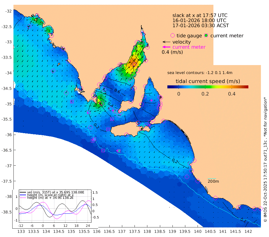 1cm/s -95T +10cm/s rms + 5cm/s 114T. SAM1DS 520m 8cm/s -115T +13cm/s rms + 5cm/s -36T. SAM2CP 100m 7cm/s -86T +21cm/s rms + 18cm/s 142T. SAM3MS 168m 12cm/s -81T +22cm/s rms + 0cm/s -30T. SAM4CY 117m 5cm/s -152T +23cm/s rms + 2cm/s 99T. SAM5CB 94m 4cm/s -119T +8cm/s rms + 3cm/s -172T. SAM6IS 83m 2cm/s -92T +11cm/s rms + 7cm/s 150T. SAM7DS 519m 11cm/s -56T +10cm/s rms + 2cm/s 87T. SAM8SG 47m 3cm/s -25T +20cm/s rms + 12cm/s -168T. NRSKAI 101m 25cm Warrnambool 25cm Port Fairy 23cm Portland 29cm Port Macdonnell 20cm Beachport 21cm Cape Rabelais (off) 22cm Robe 28cm Cape Jaffa 27cm Kingston 27cm Victor Harbor 13cm Vivonne Bay 61cm Kingscote 55cm American River 51cm Penneshaw 51cm Cape Jervis 64cm Second Valley 76cm Port Noarlunga 77cm Port Stanvac 75cm Brighton 79cm Glenelg 84cm Port Adelaide (Outer Harbor) 75cm Angus Inlet (Garden Island) 96cm Ardrossan 91cm Port Vincent 77cm Port Giles 36cm Stenhouse Bay 39cm Althorpe Island 34cm Pondalowie Bay 63cm Point Turton 61cm Port Victoria 69cm Cape Elizabeth 70cm Tiparra Reef Light 73cm Wallaroo 78cm Middle Bank 40cm Port Broughton 60cm Port Pirie 61cm Red Cliff Point (Beacon 5) 64cm Port Bonython 73cm Whyalla 74cm Western Shoal Beacon 82cm Franklin Harbor 81cm Franklin Harbor Entrance Beacon 69cm Arno Bay 70cm Port Neill 63cm Cape Hardy 57cm Tumby Bay 55cm Reevesby Island 45cm Port Lincoln 33cm Taylors Landing 51cm Whalers Bay 37cm Wedge Island Mooring 19cm Shelf Edge Mooring 26cm Coffin Bay Entrance Beacon 16cm Greenly Island 21cm Elliston 14cm Pearson Island 27cm Venus Bay 29cm Blanche Port (Streaky Bay) 23cm Thevenard 14cm St Francis Island