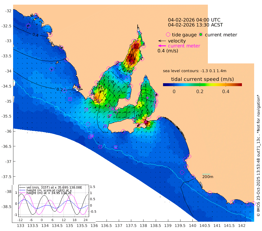 0cm/s 55T +10cm/s rms + 5cm/s 114T. SAM1DS 520m 9cm/s 66T +13cm/s rms + 5cm/s -36T. SAM2CP 100m 8cm/s 116T +21cm/s rms + 18cm/s 142T. SAM3MS 168m 6cm/s 155T +22cm/s rms + 0cm/s -30T. SAM4CY 117m 4cm/s -1T +23cm/s rms + 2cm/s 99T. SAM5CB 94m 16cm/s 61T +8cm/s rms + 3cm/s -172T. SAM6IS 83m 3cm/s 115T +11cm/s rms + 7cm/s 150T. SAM7DS 519m 14cm/s 104T +10cm/s rms + 2cm/s 87T. SAM8SG 47m 4cm/s 49T +20cm/s rms + 12cm/s -168T. NRSKAI 101m 9cm Warrnambool 10cm Port Fairy 10cm Portland 11cm Port Macdonnell 10cm Beachport 12cm Cape Rabelais (off) 13cm Robe 14cm Cape Jaffa 14cm Kingston 8cm Victor Harbor 14cm Vivonne Bay -41cm Kingscote -40cm American River -25cm Penneshaw -38cm Cape Jervis -59cm Second Valley -71cm Port Noarlunga -74cm Port Stanvac -77cm Brighton -78cm Glenelg -89cm Port Adelaide (Outer Harbor) -105cm Angus Inlet (Garden Island) -104cm Ardrossan -71cm Port Vincent -64cm Port Giles 3cm Stenhouse Bay -2cm Althorpe Island 4cm Pondalowie Bay -14cm Point Turton -15cm Port Victoria -27cm Cape Elizabeth -33cm Tiparra Reef Light -51cm Wallaroo -63cm Middle Bank -17cm Port Broughton -91cm Port Pirie -117cm Red Cliff Point (Beacon 5) -99cm Port Bonython -101cm Whyalla -93cm Western Shoal Beacon -52cm Franklin Harbor -42cm Franklin Harbor Entrance Beacon -26cm Arno Bay -19cm Port Neill -13cm Cape Hardy -6cm Tumby Bay -2cm Reevesby Island 7cm Port Lincoln 12cm Taylors Landing -7cm Whalers Bay 5cm Wedge Island Mooring 11cm Shelf Edge Mooring 21cm Coffin Bay Entrance Beacon 20cm Greenly Island 25cm Elliston 28cm Pearson Island 19cm Venus Bay 45cm Blanche Port (Streaky Bay) 45cm Thevenard 43cm St Francis Island