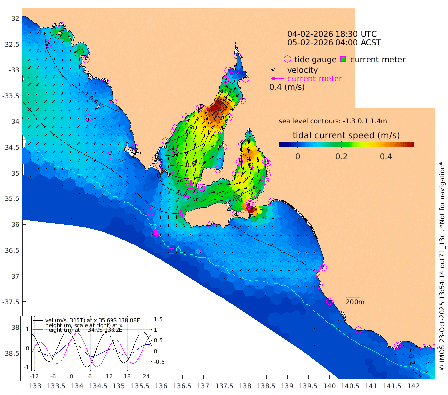1cm/s -51T +10cm/s rms + 5cm/s 114T. SAM1DS 520m 2cm/s -54T +13cm/s rms + 5cm/s -36T. SAM2CP 100m 5cm/s -10T +21cm/s rms + 18cm/s 142T. SAM3MS 168m 7cm/s -78T +22cm/s rms + 0cm/s -30T. SAM4CY 117m 4cm/s -140T +23cm/s rms + 2cm/s 99T. SAM5CB 94m 11cm/s 52T +8cm/s rms + 3cm/s -172T. SAM6IS 83m 2cm/s 6T +11cm/s rms + 7cm/s 150T. SAM7DS 519m 20cm/s 11T +10cm/s rms + 2cm/s 87T. SAM8SG 47m 17cm/s 10T +20cm/s rms + 12cm/s -168T. NRSKAI 101m 20cm Warrnambool 21cm Port Fairy 20cm Portland 30cm Port Macdonnell 22cm Beachport 24cm Cape Rabelais (off) 24cm Robe 30cm Cape Jaffa 29cm Kingston 31cm Victor Harbor 21cm Vivonne Bay 50cm Kingscote 42cm American River 51cm Penneshaw 40cm Cape Jervis 45cm Second Valley 56cm Port Noarlunga 57cm Port Stanvac 55cm Brighton 60cm Glenelg 59cm Port Adelaide (Outer Harbor) 25cm Angus Inlet (Garden Island) 73cm Ardrossan 87cm Port Vincent 71cm Port Giles 46cm Stenhouse Bay 43cm Althorpe Island 39cm Pondalowie Bay 60cm Point Turton 59cm Port Victoria 62cm Cape Elizabeth 47cm Tiparra Reef Light 26cm Wallaroo 27cm Middle Bank -12cm Port Broughton -65cm Port Pirie -73cm Red Cliff Point (Beacon 5) -48cm Port Bonython -38cm Whyalla -27cm Western Shoal Beacon 44cm Franklin Harbor 70cm Franklin Harbor Entrance Beacon 73cm Arno Bay 83cm Port Neill 76cm Cape Hardy 74cm Tumby Bay 63cm Reevesby Island 64cm Port Lincoln 51cm Taylors Landing 54cm Whalers Bay 46cm Wedge Island Mooring 26cm Shelf Edge Mooring 39cm Coffin Bay Entrance Beacon 27cm Greenly Island 38cm Elliston 33cm Pearson Island 37cm Venus Bay 57cm Blanche Port (Streaky Bay) 52cm Thevenard 33cm St Francis Island