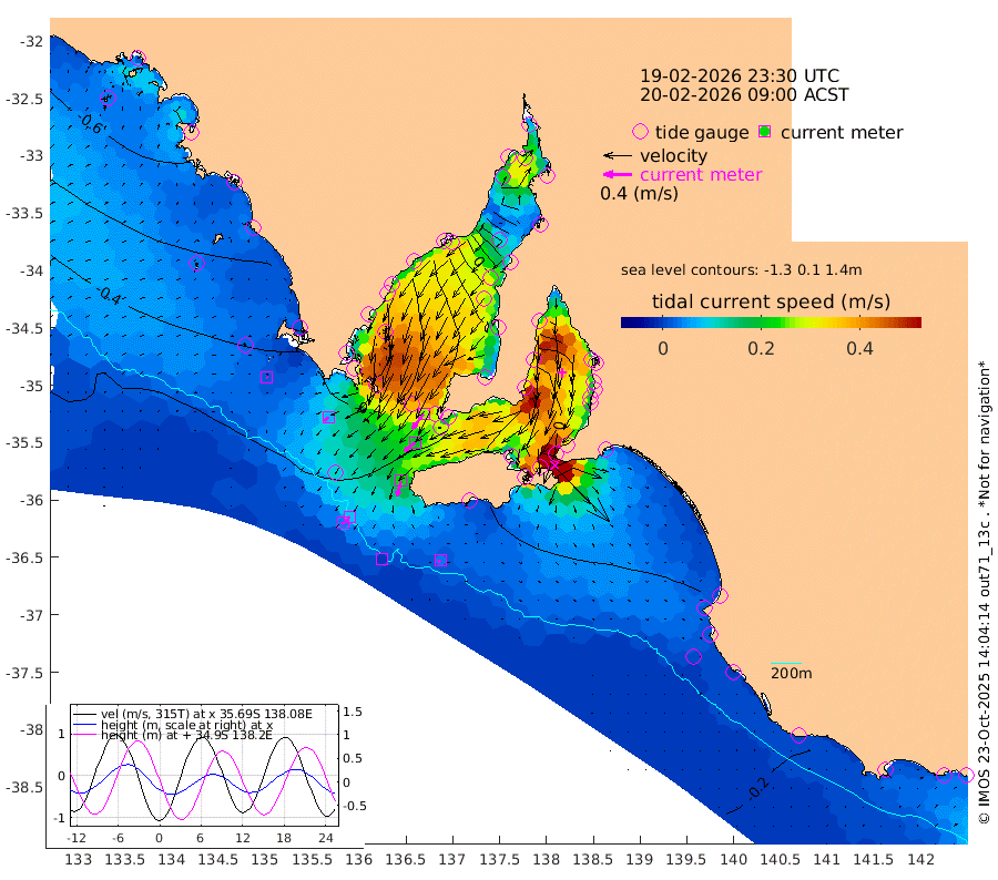 0cm/s 100T +10cm/s rms + 5cm/s 114T. SAM1DS 520m 8cm/s -136T +13cm/s rms + 5cm/s -36T. SAM2CP 100m 8cm/s -136T +21cm/s rms + 18cm/s 142T. SAM3MS 168m 4cm/s -121T +22cm/s rms + 0cm/s -30T. SAM4CY 117m 2cm/s 123T +23cm/s rms + 2cm/s 99T. SAM5CB 94m 19cm/s -127T +8cm/s rms + 3cm/s -172T. SAM6IS 83m 4cm/s -126T +11cm/s rms + 7cm/s 150T. SAM7DS 519m 27cm/s -143T +10cm/s rms + 2cm/s 87T. SAM8SG 47m 22cm/s -165T +20cm/s rms + 12cm/s -168T. NRSKAI 101m -17cm Warrnambool -18cm Port Fairy -20cm Portland -23cm Port Macdonnell -21cm Beachport -23cm Cape Rabelais (off) -24cm Robe -28cm Cape Jaffa -29cm Kingston -29cm Victor Harbor -27cm Vivonne Bay -2cm Kingscote -1cm American River -19cm Penneshaw -2cm Cape Jervis 11cm Second Valley 13cm Port Noarlunga 13cm Port Stanvac 17cm Brighton 13cm Glenelg 22cm Port Adelaide (Outer Harbor) 60cm Angus Inlet (Garden Island) 23cm Ardrossan -8cm Port Vincent -6cm Port Giles -33cm Stenhouse Bay -30cm Althorpe Island -27cm Pondalowie Bay -27cm Point Turton -26cm Port Victoria -20cm Cape Elizabeth -9cm Tiparra Reef Light 24cm Wallaroo 30cm Middle Bank 47cm Port Broughton 125cm Port Pirie 137cm Red Cliff Point (Beacon 5) 118cm Port Bonython 109cm Whyalla 87cm Western Shoal Beacon 10cm Franklin Harbor -25cm Franklin Harbor Entrance Beacon -38cm Arno Bay -50cm Port Neill -47cm Cape Hardy -52cm Tumby Bay -48cm Reevesby Island -55cm Port Lincoln -47cm Taylors Landing -33cm Whalers Bay -36cm Wedge Island Mooring -26cm Shelf Edge Mooring -45cm Coffin Bay Entrance Beacon -33cm Greenly Island -47cm Elliston -39cm Pearson Island -39cm Venus Bay -74cm Blanche Port (Streaky Bay) -72cm Thevenard -53cm St Francis Island