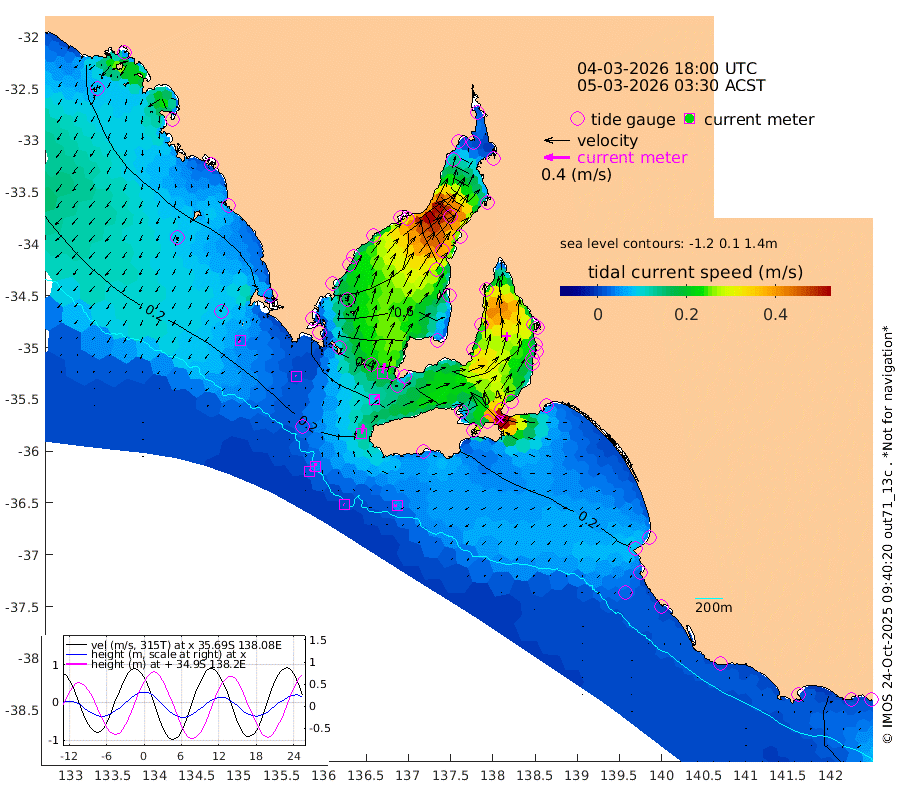 1cm/s -51T +10cm/s rms + 5cm/s 114T. SAM1DS 520m 1cm/s -67T +13cm/s rms + 5cm/s -36T. SAM2CP 100m 5cm/s 4T +21cm/s rms + 18cm/s 142T. SAM3MS 168m 4cm/s -93T +22cm/s rms + 0cm/s -30T. SAM4CY 117m 4cm/s -149T +23cm/s rms + 2cm/s 99T. SAM5CB 94m 9cm/s 54T +8cm/s rms + 3cm/s -172T. SAM6IS 83m 2cm/s 29T +11cm/s rms + 7cm/s 150T. SAM7DS 519m 16cm/s 16T +10cm/s rms + 2cm/s 87T. SAM8SG 47m 14cm/s 12T +20cm/s rms + 12cm/s -168T. NRSKAI 101m 8cm Warrnambool 9cm Port Fairy 9cm Portland 18cm Port Macdonnell 11cm Beachport 13cm Cape Rabelais (off) 14cm Robe 19cm Cape Jaffa 18cm Kingston 20cm Victor Harbor 11cm Vivonne Bay 46cm Kingscote 37cm American River 44cm Penneshaw 35cm Cape Jervis 40cm Second Valley 55cm Port Noarlunga 57cm Port Stanvac 55cm Brighton 60cm Glenelg 61cm Port Adelaide (Outer Harbor) 26cm Angus Inlet (Garden Island) 77cm Ardrossan 88cm Port Vincent 71cm Port Giles 39cm Stenhouse Bay 34cm Althorpe Island 32cm Pondalowie Bay 53cm Point Turton 54cm Port Victoria 55cm Cape Elizabeth 39cm Tiparra Reef Light 17cm Wallaroo 17cm Middle Bank -20cm Port Broughton -81cm Port Pirie -91cm Red Cliff Point (Beacon 5) -61cm Port Bonython -52cm Whyalla -40cm Western Shoal Beacon 36cm Franklin Harbor 61cm Franklin Harbor Entrance Beacon 66cm Arno Bay 75cm Port Neill 68cm Cape Hardy 66cm Tumby Bay 56cm Reevesby Island 56cm Port Lincoln 42cm Taylors Landing 47cm Whalers Bay 38cm Wedge Island Mooring 16cm Shelf Edge Mooring 29cm Coffin Bay Entrance Beacon 17cm Greenly Island 28cm Elliston 23cm Pearson Island 29cm Venus Bay 47cm Blanche Port (Streaky Bay) 42cm Thevenard 21cm St Francis Island