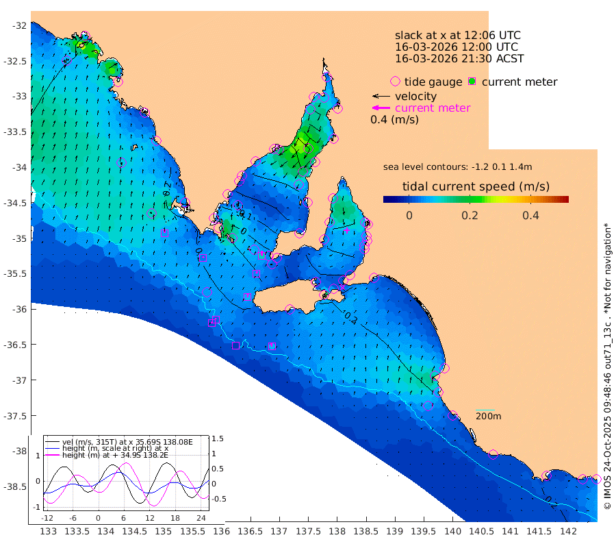 0cm/s -58T +10cm/s rms + 5cm/s 114T. SAM1DS 520m 4cm/s 37T +13cm/s rms + 5cm/s -36T. SAM2CP 100m 3cm/s -29T +21cm/s rms + 18cm/s 142T. SAM3MS 168m 7cm/s -9T +22cm/s rms + 0cm/s -30T. SAM4CY 117m 5cm/s 8T +23cm/s rms + 2cm/s 99T. SAM5CB 94m 5cm/s 20T +8cm/s rms + 3cm/s -172T. SAM6IS 83m 2cm/s -49T +11cm/s rms + 7cm/s 150T. SAM7DS 519m 11cm/s 7T +10cm/s rms + 2cm/s 87T. SAM8SG 47m 8cm/s 6T +20cm/s rms + 12cm/s -168T. NRSKAI 101m 19cm Warrnambool 18cm Port Fairy 21cm Portland 16cm Port Macdonnell 22cm Beachport 23cm Cape Rabelais (off) 20cm Robe 21cm Cape Jaffa 20cm Kingston 20cm Victor Harbor 24cm Vivonne Bay -15cm Kingscote -9cm American River -6cm Penneshaw -8cm Cape Jervis -16cm Second Valley -34cm Port Noarlunga -36cm Port Stanvac -34cm Brighton -37cm Glenelg -43cm Port Adelaide (Outer Harbor) -31cm Angus Inlet (Garden Island) -58cm Ardrossan -51cm Port Vincent -39cm Port Giles 2cm Stenhouse Bay 8cm Althorpe Island 4cm Pondalowie Bay -15cm Point Turton -14cm Port Victoria -14cm Cape Elizabeth -8cm Tiparra Reef Light 0cm Wallaroo 1cm Middle Bank 17cm Port Broughton 51cm Port Pirie 60cm Red Cliff Point (Beacon 5) 38cm Port Bonython 34cm Whyalla 28cm Western Shoal Beacon -17cm Franklin Harbor -16cm Franklin Harbor Entrance Beacon -14cm Arno Bay -14cm Port Neill -8cm Cape Hardy -4cm Tumby Bay -6cm Reevesby Island 0cm Port Lincoln 10cm Taylors Landing -4cm Whalers Bay 8cm Wedge Island Mooring 23cm Shelf Edge Mooring 20cm Coffin Bay Entrance Beacon 23cm Greenly Island 24cm Elliston 26cm Pearson Island 11cm Venus Bay 19cm Blanche Port (Streaky Bay) 21cm Thevenard 28cm St Francis Island