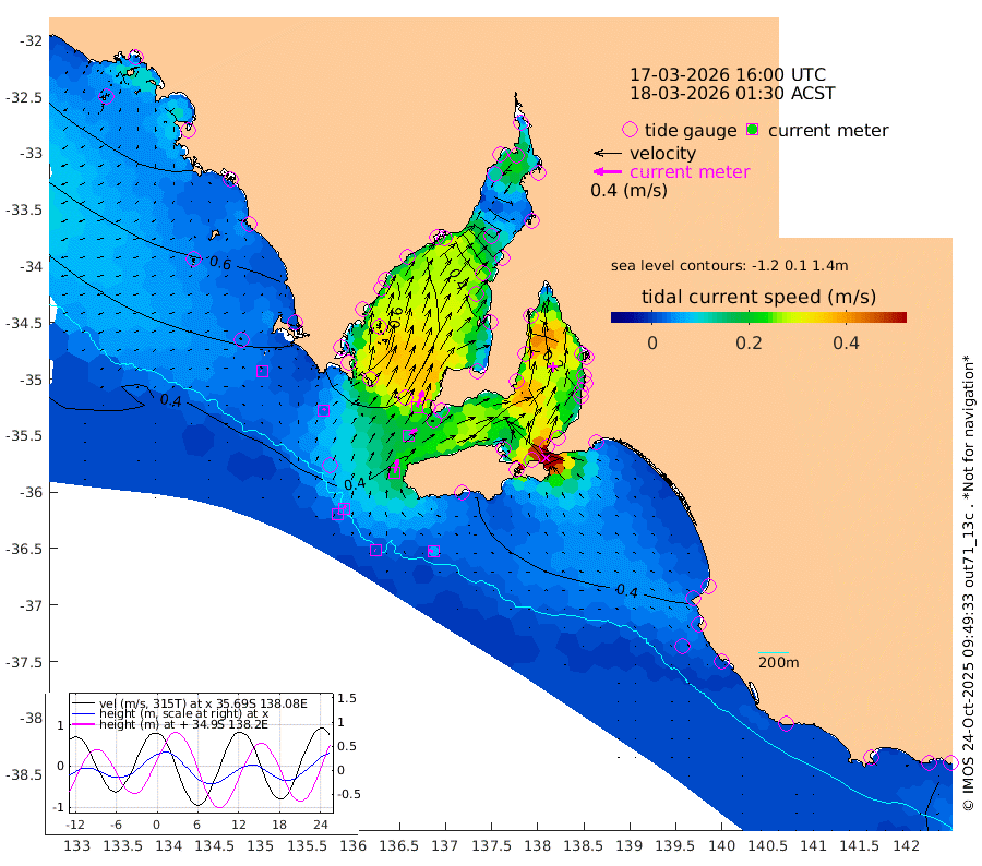 1cm/s -55T +10cm/s rms + 5cm/s 114T. SAM1DS 520m 3cm/s 40T +13cm/s rms + 5cm/s -36T. SAM2CP 100m 4cm/s 20T +21cm/s rms + 18cm/s 142T. SAM3MS 168m 7cm/s -70T +22cm/s rms + 0cm/s -30T. SAM4CY 117m 2cm/s -83T +23cm/s rms + 2cm/s 99T. SAM5CB 94m 14cm/s 51T +8cm/s rms + 3cm/s -172T. SAM6IS 83m 1cm/s 31T +11cm/s rms + 7cm/s 150T. SAM7DS 519m 24cm/s 19T +10cm/s rms + 2cm/s 87T. SAM8SG 47m 19cm/s 13T +20cm/s rms + 12cm/s -168T. NRSKAI 101m 30cm Warrnambool 31cm Port Fairy 33cm Portland 37cm Port Macdonnell 33cm Beachport 37cm Cape Rabelais (off) 37cm Robe 43cm Cape Jaffa 41cm Kingston 42cm Victor Harbor 35cm Vivonne Bay 26cm Kingscote 24cm American River 37cm Penneshaw 23cm Cape Jervis 13cm Second Valley 13cm Port Noarlunga 13cm Port Stanvac 11cm Brighton 14cm Glenelg 7cm Port Adelaide (Outer Harbor) -25cm Angus Inlet (Garden Island) 8cm Ardrossan 35cm Port Vincent 28cm Port Giles 46cm Stenhouse Bay 46cm Althorpe Island 42cm Pondalowie Bay 47cm Point Turton 50cm Port Victoria 45cm Cape Elizabeth 34cm Tiparra Reef Light 11cm Wallaroo 7cm Middle Bank -8cm Port Broughton -71cm Port Pirie -85cm Red Cliff Point (Beacon 5) -63cm Port Bonython -57cm Whyalla -43cm Western Shoal Beacon 15cm Franklin Harbor 46cm Franklin Harbor Entrance Beacon 58cm Arno Bay 70cm Port Neill 68cm Cape Hardy 71cm Tumby Bay 63cm Reevesby Island 68cm Port Lincoln 59cm Taylors Landing 52cm Whalers Bay 51cm Wedge Island Mooring 39cm Shelf Edge Mooring 56cm Coffin Bay Entrance Beacon 45cm Greenly Island 59cm Elliston 57cm Pearson Island 50cm Venus Bay 87cm Blanche Port (Streaky Bay) 83cm Thevenard 72cm St Francis Island