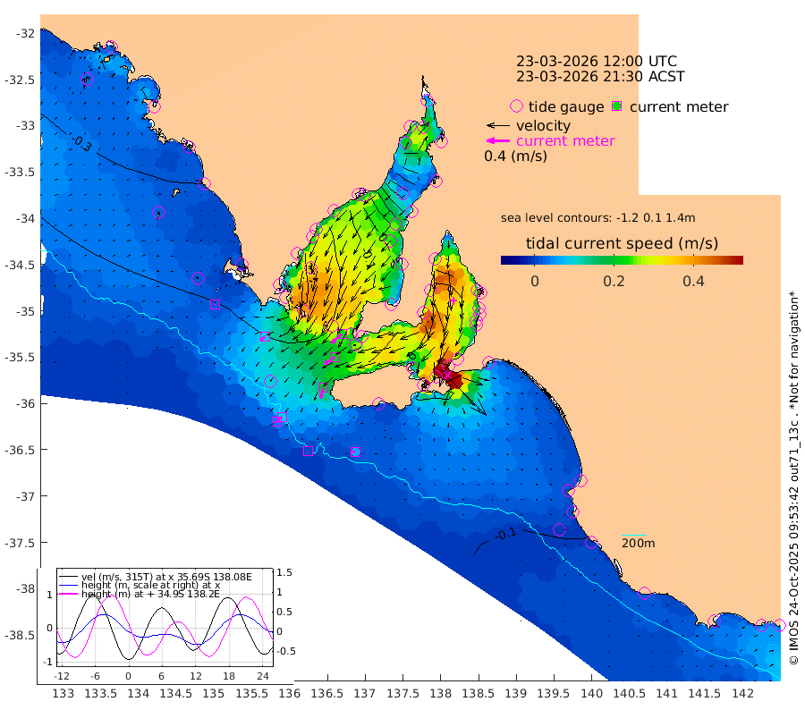 1cm/s -140T +10cm/s rms + 5cm/s 114T. SAM1DS 520m 10cm/s -128T +13cm/s rms + 5cm/s -36T. SAM2CP 100m 9cm/s -124T +21cm/s rms + 18cm/s 142T. SAM3MS 168m 7cm/s -76T +22cm/s rms + 0cm/s -30T. SAM4CY 117m 1cm/s 148T +23cm/s rms + 2cm/s 99T. SAM5CB 94m 22cm/s -125T +8cm/s rms + 3cm/s -172T. SAM6IS 83m 4cm/s -122T +11cm/s rms + 7cm/s 150T. SAM7DS 519m 23cm/s -131T +10cm/s rms + 2cm/s 87T. SAM8SG 47m 19cm/s -163T +20cm/s rms + 12cm/s -168T. NRSKAI 101m -4cm Warrnambool -4cm Port Fairy -4cm Portland -8cm Port Macdonnell -7cm Beachport -7cm Cape Rabelais (off) -8cm Robe -8cm Cape Jaffa -8cm Kingston -9cm Victor Harbor -13cm Vivonne Bay 12cm Kingscote 19cm American River 0cm Penneshaw 15cm Cape Jervis 26cm Second Valley 26cm Port Noarlunga 27cm Port Stanvac 29cm Brighton 27cm Glenelg 34cm Port Adelaide (Outer Harbor) 67cm Angus Inlet (Garden Island) 34cm Ardrossan 15cm Port Vincent 9cm Port Giles -16cm Stenhouse Bay -7cm Althorpe Island -10cm Pondalowie Bay -6cm Point Turton -5cm Port Victoria 3cm Cape Elizabeth 20cm Tiparra Reef Light 51cm Wallaroo 57cm Middle Bank 67cm Port Broughton 155cm Port Pirie 175cm Red Cliff Point (Beacon 5) 140cm Port Bonython 136cm Whyalla 122cm Western Shoal Beacon 37cm Franklin Harbor 4cm Franklin Harbor Entrance Beacon -12cm Arno Bay -21cm Port Neill -20cm Cape Hardy -26cm Tumby Bay -19cm Reevesby Island -30cm Port Lincoln -26cm Taylors Landing -10cm Whalers Bay -15cm Wedge Island Mooring -10cm Shelf Edge Mooring -20cm Coffin Bay Entrance Beacon -16cm Greenly Island -23cm Elliston -21cm Pearson Island -15cm Venus Bay -39cm Blanche Port (Streaky Bay) -39cm Thevenard -22cm St Francis Island