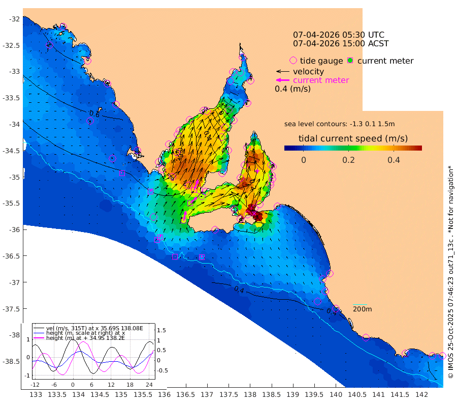1cm/s 38T +10cm/s rms + 5cm/s 114T. SAM1DS 520m 7cm/s 32T +13cm/s rms + 5cm/s -36T. SAM2CP 100m 9cm/s 16T +21cm/s rms + 18cm/s 142T. SAM3MS 168m 4cm/s 7T +22cm/s rms + 0cm/s -30T. SAM4CY 117m 3cm/s -61T +23cm/s rms + 2cm/s 99T. SAM5CB 94m 26cm/s 49T +8cm/s rms + 3cm/s -172T. SAM6IS 83m 4cm/s 28T +11cm/s rms + 7cm/s 150T. SAM7DS 519m 34cm/s 22T +10cm/s rms + 2cm/s 87T. SAM8SG 47m 29cm/s 13T +20cm/s rms + 12cm/s -168T. NRSKAI 101m 43cm Warrnambool 40cm Port Fairy 41cm Portland 41cm Port Macdonnell 41cm Beachport 43cm Cape Rabelais (off) 42cm Robe 43cm Cape Jaffa 46cm Kingston 47cm Victor Harbor 43cm Vivonne Bay 23cm Kingscote 16cm American River 36cm Penneshaw 18cm Cape Jervis 7cm Second Valley 7cm Port Noarlunga 7cm Port Stanvac 3cm Brighton 6cm Glenelg -1cm Port Adelaide (Outer Harbor) -32cm Angus Inlet (Garden Island) -2cm Ardrossan 21cm Port Vincent 24cm Port Giles 48cm Stenhouse Bay 46cm Althorpe Island 41cm Pondalowie Bay 48cm Point Turton 43cm Port Victoria 38cm Cape Elizabeth 33cm Tiparra Reef Light 4cm Wallaroo 1cm Middle Bank -41cm Port Broughton -85cm Port Pirie -99cm Red Cliff Point (Beacon 5) -66cm Port Bonython -65cm Whyalla -53cm Western Shoal Beacon 11cm Franklin Harbor 49cm Franklin Harbor Entrance Beacon 60cm Arno Bay 77cm Port Neill 67cm Cape Hardy 69cm Tumby Bay 65cm Reevesby Island 71cm Port Lincoln 63cm Taylors Landing 47cm Whalers Bay 52cm Wedge Island Mooring 43cm Shelf Edge Mooring 57cm Coffin Bay Entrance Beacon 47cm Greenly Island 56cm Elliston 51cm Pearson Island 46cm Venus Bay 77cm Blanche Port (Streaky Bay) 76cm Thevenard 62cm St Francis Island