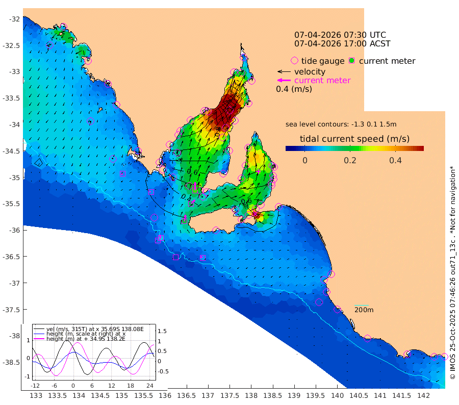 0cm/s 45T +10cm/s rms + 5cm/s 114T. SAM1DS 520m 5cm/s -82T +13cm/s rms + 5cm/s -36T. SAM2CP 100m 9cm/s -21T +21cm/s rms + 18cm/s 142T. SAM3MS 168m 6cm/s -50T +22cm/s rms + 0cm/s -30T. SAM4CY 117m 5cm/s -134T +23cm/s rms + 2cm/s 99T. SAM5CB 94m 16cm/s 46T +8cm/s rms + 3cm/s -172T. SAM6IS 83m 4cm/s -2T +11cm/s rms + 7cm/s 150T. SAM7DS 519m 24cm/s 2T +10cm/s rms + 2cm/s 87T. SAM8SG 47m 19cm/s 9T +20cm/s rms + 12cm/s -168T. NRSKAI 101m 23cm Warrnambool 22cm Port Fairy 23cm Portland 26cm Port Macdonnell 24cm Beachport 24cm Cape Rabelais (off) 24cm Robe 27cm Cape Jaffa 27cm Kingston 33cm Victor Harbor 21cm Vivonne Bay 74cm Kingscote 62cm American River 67cm Penneshaw 59cm Cape Jervis 72cm Second Valley 90cm Port Noarlunga 94cm Port Stanvac 93cm Brighton 98cm Glenelg 102cm Port Adelaide (Outer Harbor) 77cm Angus Inlet (Garden Island) 122cm Ardrossan 121cm Port Vincent 104cm Port Giles 50cm Stenhouse Bay 49cm Althorpe Island 41cm Pondalowie Bay 69cm Point Turton 66cm Port Victoria 71cm Cape Elizabeth 66cm Tiparra Reef Light 52cm Wallaroo 57cm Middle Bank -17cm Port Broughton -19cm Port Pirie -22cm Red Cliff Point (Beacon 5) 4cm Port Bonython 12cm Whyalla 19cm Western Shoal Beacon 69cm Franklin Harbor 91cm Franklin Harbor Entrance Beacon 86cm Arno Bay 97cm Port Neill 82cm Cape Hardy 77cm Tumby Bay 70cm Reevesby Island 66cm Port Lincoln 50cm Taylors Landing 60cm Whalers Bay 48cm Wedge Island Mooring 26cm Shelf Edge Mooring 33cm Coffin Bay Entrance Beacon 23cm Greenly Island 28cm Elliston 22cm Pearson Island 29cm Venus Bay 37cm Blanche Port (Streaky Bay) 33cm Thevenard 20cm St Francis Island