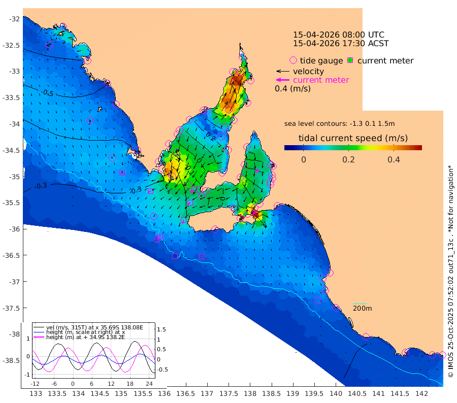 0cm/s 157T +10cm/s rms + 5cm/s 114T. SAM1DS 520m 8cm/s -122T +13cm/s rms + 5cm/s -36T. SAM2CP 100m 5cm/s -82T +21cm/s rms + 18cm/s 142T. SAM3MS 168m 2cm/s 30T +22cm/s rms + 0cm/s -30T. SAM4CY 117m 4cm/s 173T +23cm/s rms + 2cm/s 99T. SAM5CB 94m 9cm/s -123T +8cm/s rms + 3cm/s -172T. SAM6IS 83m 2cm/s -74T +11cm/s rms + 7cm/s 150T. SAM7DS 519m 14cm/s -129T +10cm/s rms + 2cm/s 87T. SAM8SG 47m 10cm/s -159T +20cm/s rms + 12cm/s -168T. NRSKAI 101m -17cm Warrnambool -18cm Port Fairy -20cm Portland -22cm Port Macdonnell -23cm Beachport -25cm Cape Rabelais (off) -25cm Robe -25cm Cape Jaffa -25cm Kingston -23cm Victor Harbor -28cm Vivonne Bay 23cm Kingscote 19cm American River 9cm Penneshaw 19cm Cape Jervis 39cm Second Valley 50cm Port Noarlunga 52cm Port Stanvac 54cm Brighton 55cm Glenelg 66cm Port Adelaide (Outer Harbor) 78cm Angus Inlet (Garden Island) 79cm Ardrossan 44cm Port Vincent 43cm Port Giles -16cm Stenhouse Bay -14cm Althorpe Island -19cm Pondalowie Bay 0cm Point Turton -1cm Port Victoria 8cm Cape Elizabeth 15cm Tiparra Reef Light 31cm Wallaroo 39cm Middle Bank 7cm Port Broughton 67cm Port Pirie 88cm Red Cliff Point (Beacon 5) 64cm Port Bonython 73cm Whyalla 68cm Western Shoal Beacon 39cm Franklin Harbor 21cm Franklin Harbor Entrance Beacon 2cm Arno Bay -5cm Port Neill -8cm Cape Hardy -15cm Tumby Bay -16cm Reevesby Island -25cm Port Lincoln -30cm Taylors Landing -9cm Whalers Bay -22cm Wedge Island Mooring -27cm Shelf Edge Mooring -39cm Coffin Bay Entrance Beacon -34cm Greenly Island -42cm Elliston -49cm Pearson Island -32cm Venus Bay -64cm Blanche Port (Streaky Bay) -64cm Thevenard -59cm St Francis Island