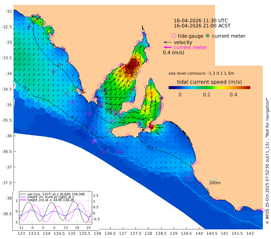 1cm/s -99T +10cm/s rms + 5cm/s 114T. SAM1DS 520m 2cm/s 108T +13cm/s rms + 5cm/s -36T. SAM2CP 100m 6cm/s -161T +21cm/s rms + 18cm/s 142T. SAM3MS 168m 2cm/s -13T +22cm/s rms + 0cm/s -30T. SAM4CY 117m 5cm/s 37T +23cm/s rms + 2cm/s 99T. SAM5CB 94m 11cm/s -127T +8cm/s rms + 3cm/s -172T. SAM6IS 83m 3cm/s -147T +11cm/s rms + 7cm/s 150T. SAM7DS 519m 16cm/s -165T +10cm/s rms + 2cm/s 87T. SAM8SG 47m 12cm/s -166T +20cm/s rms + 12cm/s -168T. NRSKAI 101m -3cm Warrnambool -3cm Port Fairy -4cm Portland -8cm Port Macdonnell -5cm Beachport -6cm Cape Rabelais (off) -8cm Robe -7cm Cape Jaffa -6cm Kingston -13cm Victor Harbor -7cm Vivonne Bay -49cm Kingscote -38cm American River -43cm Penneshaw -38cm Cape Jervis -42cm Second Valley -64cm Port Noarlunga -67cm Port Stanvac -65cm Brighton -70cm Glenelg -73cm Port Adelaide (Outer Harbor) -46cm Angus Inlet (Garden Island) -94cm Ardrossan -94cm Port Vincent -78cm Port Giles -35cm Stenhouse Bay -28cm Althorpe Island -26cm Pondalowie Bay -47cm Point Turton -47cm Port Victoria -44cm Cape Elizabeth -37cm Tiparra Reef Light -16cm Wallaroo -17cm Middle Bank 38cm Port Broughton 80cm Port Pirie 96cm Red Cliff Point (Beacon 5) 51cm Port Bonython 48cm Whyalla 37cm Western Shoal Beacon -30cm Franklin Harbor -56cm Franklin Harbor Entrance Beacon -62cm Arno Bay -70cm Port Neill -60cm Cape Hardy -57cm Tumby Bay -54cm Reevesby Island -50cm Port Lincoln -34cm Taylors Landing -43cm Whalers Bay -30cm Wedge Island Mooring -10cm Shelf Edge Mooring -19cm Coffin Bay Entrance Beacon -12cm Greenly Island -16cm Elliston -16cm Pearson Island -20cm Venus Bay -31cm Blanche Port (Streaky Bay) -29cm Thevenard -20cm St Francis Island