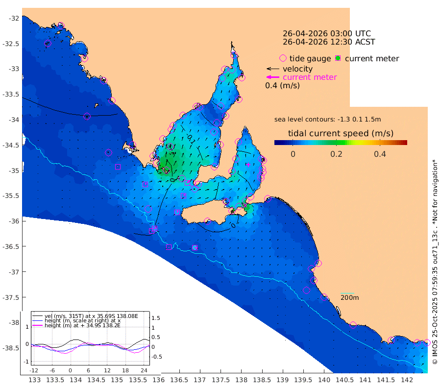 1cm/s 126T +10cm/s rms + 5cm/s 114T. SAM1DS 520m 4cm/s 46T +13cm/s rms + 5cm/s -36T. SAM2CP 100m 5cm/s 60T +21cm/s rms + 18cm/s 142T. SAM3MS 168m 8cm/s 92T +22cm/s rms + 0cm/s -30T. SAM4CY 117m 1cm/s -18T +23cm/s rms + 2cm/s 99T. SAM5CB 94m 5cm/s 47T +8cm/s rms + 3cm/s -172T. SAM6IS 83m 2cm/s 65T +11cm/s rms + 7cm/s 150T. SAM7DS 519m 10cm/s 42T +10cm/s rms + 2cm/s 87T. SAM8SG 47m 6cm/s 17T +20cm/s rms + 12cm/s -168T. NRSKAI 101m -6cm Warrnambool -6cm Port Fairy -6cm Portland -7cm Port Macdonnell -5cm Beachport -4cm Cape Rabelais (off) -4cm Robe -6cm Cape Jaffa -4cm Kingston -3cm Victor Harbor 2cm Vivonne Bay -17cm Kingscote -16cm American River -12cm Penneshaw -14cm Cape Jervis -21cm Second Valley -21cm Port Noarlunga -22cm Port Stanvac -24cm Brighton -24cm Glenelg -26cm Port Adelaide (Outer Harbor) -34cm Angus Inlet (Garden Island) -27cm Ardrossan -20cm Port Vincent -19cm Port Giles -5cm Stenhouse Bay -5cm Althorpe Island -5cm Pondalowie Bay -11cm Point Turton -13cm Port Victoria -16cm Cape Elizabeth -16cm Tiparra Reef Light -28cm Wallaroo -31cm Middle Bank -37cm Port Broughton -58cm Port Pirie -58cm Red Cliff Point (Beacon 5) -53cm Port Bonython -53cm Whyalla -43cm Western Shoal Beacon -28cm Franklin Harbor -14cm Franklin Harbor Entrance Beacon -7cm Arno Bay -4cm Port Neill -1cm Cape Hardy 1cm Tumby Bay 3cm Reevesby Island 3cm Port Lincoln 2cm Taylors Landing -6cm Whalers Bay -3cm Wedge Island Mooring -1cm Shelf Edge Mooring 5cm Coffin Bay Entrance Beacon 3cm Greenly Island 6cm Elliston 5cm Pearson Island 3cm Venus Bay 14cm Blanche Port (Streaky Bay) 17cm Thevenard 14cm St Francis Island
