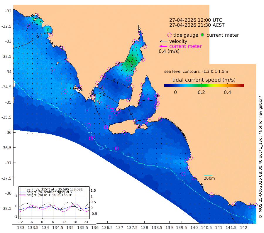 1cm/s -64T +10cm/s rms + 5cm/s 114T. SAM1DS 520m 2cm/s 54T +13cm/s rms + 5cm/s -36T. SAM2CP 100m 1cm/s -99T +21cm/s rms + 18cm/s 142T. SAM3MS 168m 4cm/s -50T +22cm/s rms + 0cm/s -30T. SAM4CY 117m 3cm/s 4T +23cm/s rms + 2cm/s 99T. SAM5CB 94m 2cm/s 8T +8cm/s rms + 3cm/s -172T. SAM6IS 83m 1cm/s -104T +11cm/s rms + 7cm/s 150T. SAM7DS 519m 4cm/s 12T +10cm/s rms + 2cm/s 87T. SAM8SG 47m 4cm/s 7T +20cm/s rms + 12cm/s -168T. NRSKAI 101m 8cm Warrnambool 10cm Port Fairy 10cm Portland 12cm Port Macdonnell 12cm Beachport 13cm Cape Rabelais (off) 11cm Robe 15cm Cape Jaffa 15cm Kingston 13cm Victor Harbor 13cm Vivonne Bay -7cm Kingscote -2cm American River 0cm Penneshaw -4cm Cape Jervis -7cm Second Valley -17cm Port Noarlunga -18cm Port Stanvac -18cm Brighton -19cm Glenelg -23cm Port Adelaide (Outer Harbor) -23cm Angus Inlet (Garden Island) -31cm Ardrossan -12cm Port Vincent -18cm Port Giles 4cm Stenhouse Bay 6cm Althorpe Island 7cm Pondalowie Bay -3cm Point Turton -2cm Port Victoria 2cm Cape Elizabeth -5cm Tiparra Reef Light -2cm Wallaroo -4cm Middle Bank 16cm Port Broughton 14cm Port Pirie 18cm Red Cliff Point (Beacon 5) 8cm Port Bonython 4cm Whyalla 1cm Western Shoal Beacon -6cm Franklin Harbor -7cm Franklin Harbor Entrance Beacon -4cm Arno Bay -2cm Port Neill 1cm Cape Hardy 4cm Tumby Bay 1cm Reevesby Island 4cm Port Lincoln 10cm Taylors Landing 1cm Whalers Bay 9cm Wedge Island Mooring 14cm Shelf Edge Mooring 16cm Coffin Bay Entrance Beacon 15cm Greenly Island 18cm Elliston 20cm Pearson Island 12cm Venus Bay 22cm Blanche Port (Streaky Bay) 21cm Thevenard 18cm St Francis Island