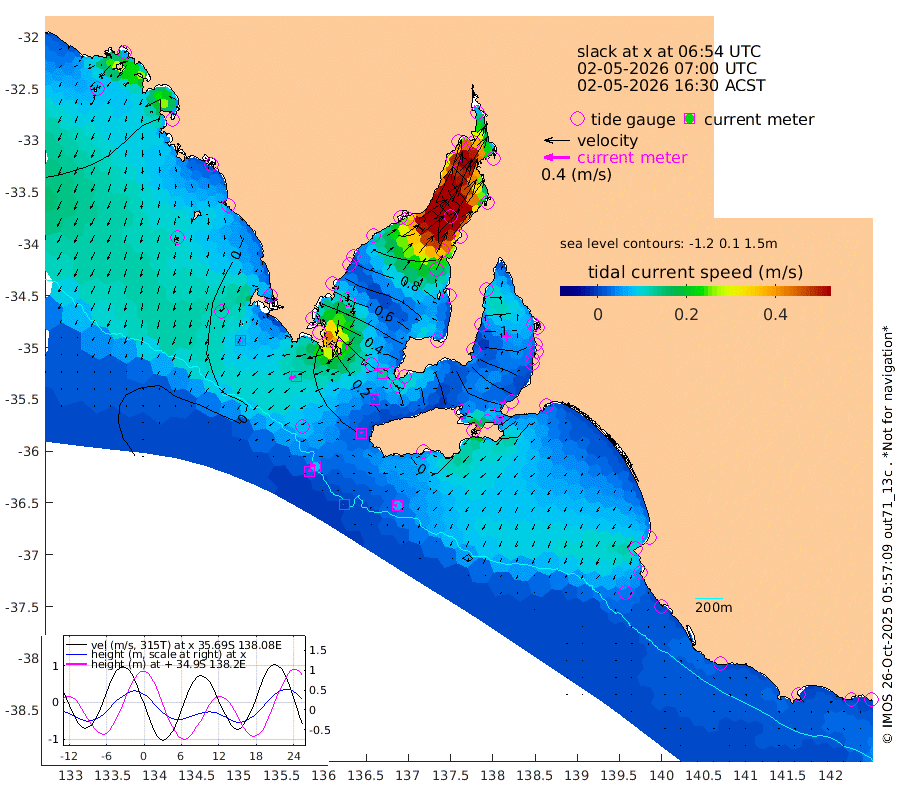 0cm/s -125T +10cm/s rms + 5cm/s 114T. SAM1DS 520m 11cm/s -110T +13cm/s rms + 5cm/s -36T. SAM2CP 100m 8cm/s -65T +21cm/s rms + 18cm/s 142T. SAM3MS 168m 7cm/s -75T +22cm/s rms + 0cm/s -30T. SAM4CY 117m 7cm/s -155T +23cm/s rms + 2cm/s 99T. SAM5CB 94m 3cm/s -69T +8cm/s rms + 3cm/s -172T. SAM6IS 83m 2cm/s -51T +11cm/s rms + 7cm/s 150T. SAM7DS 519m 13cm/s -55T +10cm/s rms + 2cm/s 87T. SAM8SG 47m 3cm/s -36T +20cm/s rms + 12cm/s -168T. NRSKAI 101m 5cm Warrnambool 5cm Port Fairy 5cm Portland 9cm Port Macdonnell 3cm Beachport 3cm Cape Rabelais (off) 5cm Robe 9cm Cape Jaffa 6cm Kingston 12cm Victor Harbor -2cm Vivonne Bay 81cm Kingscote 70cm American River 62cm Penneshaw 66cm Cape Jervis 91cm Second Valley 113cm Port Noarlunga 118cm Port Stanvac 119cm Brighton 123cm Glenelg 134cm Port Adelaide (Outer Harbor) 124cm Angus Inlet (Garden Island) 159cm Ardrossan 135cm Port Vincent 117cm Port Giles 33cm Stenhouse Bay 34cm Althorpe Island 26cm Pondalowie Bay 63cm Point Turton 62cm Port Victoria 71cm Cape Elizabeth 73cm Tiparra Reef Light 77cm Wallaroo 86cm Middle Bank 18cm Port Broughton 55cm Port Pirie 59cm Red Cliff Point (Beacon 5) 63cm Port Bonython 79cm Whyalla 83cm Western Shoal Beacon 93cm Franklin Harbor 92cm Franklin Harbor Entrance Beacon 76cm Arno Bay 73cm Port Neill 64cm Cape Hardy 55cm Tumby Bay 52cm Reevesby Island 40cm Port Lincoln 22cm Taylors Landing 50cm Whalers Bay 28cm Wedge Island Mooring 4cm Shelf Edge Mooring 5cm Coffin Bay Entrance Beacon -1cm Greenly Island 1cm Elliston -9cm Pearson Island 10cm Venus Bay -2cm Blanche Port (Streaky Bay) -6cm Thevenard -16cm St Francis Island