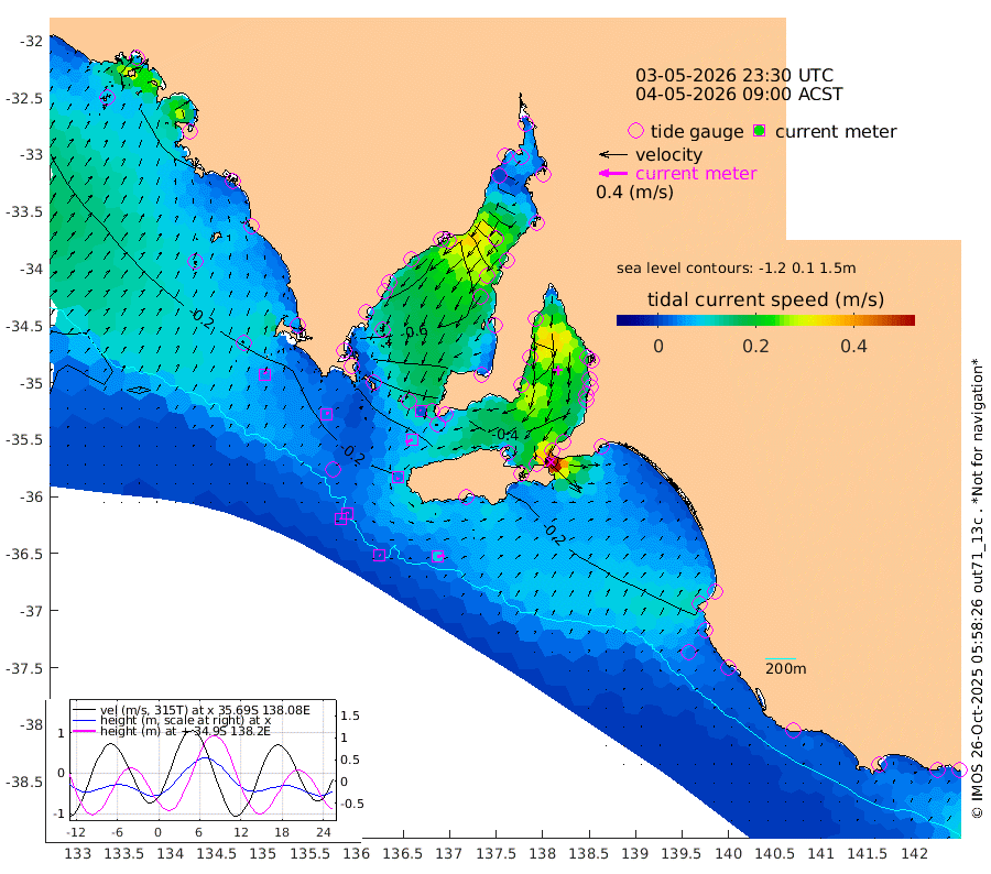1cm/s 100T +10cm/s rms + 5cm/s 114T. SAM1DS 520m 4cm/s 54T +13cm/s rms + 5cm/s -36T. SAM2CP 100m 1cm/s 25T +21cm/s rms + 18cm/s 142T. SAM3MS 168m 10cm/s 76T +22cm/s rms + 0cm/s -30T. SAM4CY 117m 4cm/s 32T +23cm/s rms + 2cm/s 99T. SAM5CB 94m 10cm/s -112T +8cm/s rms + 3cm/s -172T. SAM6IS 83m 2cm/s -46T +11cm/s rms + 7cm/s 150T. SAM7DS 519m 1cm/s -14T +10cm/s rms + 2cm/s 87T. SAM8SG 47m 3cm/s -158T +20cm/s rms + 12cm/s -168T. NRSKAI 101m -14cm Warrnambool -14cm Port Fairy -14cm Portland -19cm Port Macdonnell -12cm Beachport -13cm Cape Rabelais (off) -17cm Robe -23cm Cape Jaffa -21cm Kingston -19cm Victor Harbor -6cm Vivonne Bay -43cm Kingscote -36cm American River -40cm Penneshaw -32cm Cape Jervis -37cm Second Valley -47cm Port Noarlunga -49cm Port Stanvac -49cm Brighton -52cm Glenelg -52cm Port Adelaide (Outer Harbor) -22cm Angus Inlet (Garden Island) -61cm Ardrossan -72cm Port Vincent -61cm Port Giles -36cm Stenhouse Bay -36cm Althorpe Island -31cm Pondalowie Bay -54cm Point Turton -54cm Port Victoria -55cm Cape Elizabeth -46cm Tiparra Reef Light -32cm Wallaroo -29cm Middle Bank -16cm Port Broughton 36cm Port Pirie 49cm Red Cliff Point (Beacon 5) 36cm Port Bonython 20cm Whyalla 8cm Western Shoal Beacon -51cm Franklin Harbor -58cm Franklin Harbor Entrance Beacon -56cm Arno Bay -63cm Port Neill -56cm Cape Hardy -54cm Tumby Bay -48cm Reevesby Island -47cm Port Lincoln -33cm Taylors Landing -48cm Whalers Bay -33cm Wedge Island Mooring -12cm Shelf Edge Mooring -25cm Coffin Bay Entrance Beacon -13cm Greenly Island -24cm Elliston -13cm Pearson Island -29cm Venus Bay -41cm Blanche Port (Streaky Bay) -35cm Thevenard -21cm St Francis Island