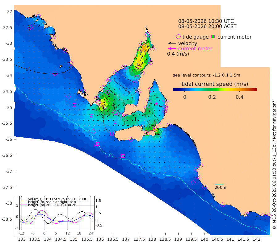 1cm/s -91T +10cm/s rms + 5cm/s 114T. SAM1DS 520m 8cm/s -118T +13cm/s rms + 5cm/s -36T. SAM2CP 100m 7cm/s -92T +21cm/s rms + 18cm/s 142T. SAM3MS 168m 10cm/s -74T +22cm/s rms + 0cm/s -30T. SAM4CY 117m 2cm/s -143T +23cm/s rms + 2cm/s 99T. SAM5CB 94m 8cm/s -116T +8cm/s rms + 3cm/s -172T. SAM6IS 83m 3cm/s -95T +11cm/s rms + 7cm/s 150T. SAM7DS 519m 12cm/s -76T +10cm/s rms + 2cm/s 87T. SAM8SG 47m 3cm/s -132T +20cm/s rms + 12cm/s -168T. NRSKAI 101m 9cm Warrnambool 11cm Port Fairy 10cm Portland 15cm Port Macdonnell 10cm Beachport 12cm Cape Rabelais (off) 9cm Robe 13cm Cape Jaffa 13cm Kingston 15cm Victor Harbor 5cm Vivonne Bay 51cm Kingscote 50cm American River 41cm Penneshaw 45cm Cape Jervis 61cm Second Valley 70cm Port Noarlunga 72cm Port Stanvac 74cm Brighton 75cm Glenelg 82cm Port Adelaide (Outer Harbor) 87cm Angus Inlet (Garden Island) 94cm Ardrossan 85cm Port Vincent 66cm Port Giles 20cm Stenhouse Bay 26cm Althorpe Island 20cm Pondalowie Bay 36cm Point Turton 38cm Port Victoria 47cm Cape Elizabeth 49cm Tiparra Reef Light 62cm Wallaroo 67cm Middle Bank 45cm Port Broughton 86cm Port Pirie 96cm Red Cliff Point (Beacon 5) 91cm Port Bonython 91cm Whyalla 84cm Western Shoal Beacon 60cm Franklin Harbor 52cm Franklin Harbor Entrance Beacon 42cm Arno Bay 43cm Port Neill 37cm Cape Hardy 31cm Tumby Bay 27cm Reevesby Island 20cm Port Lincoln 14cm Taylors Landing 30cm Whalers Bay 20cm Wedge Island Mooring 11cm Shelf Edge Mooring 9cm Coffin Bay Entrance Beacon 6cm Greenly Island 6cm Elliston 8cm Pearson Island 10cm Venus Bay 4cm Blanche Port (Streaky Bay) -1cm Thevenard 4cm St Francis Island