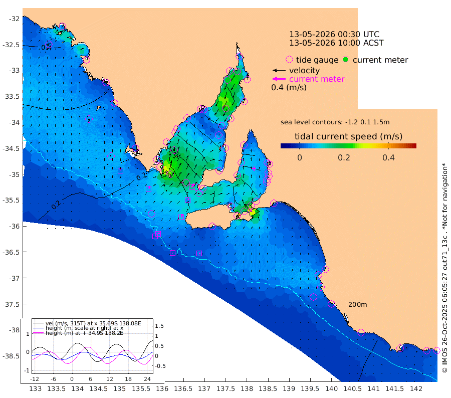 1cm/s 120T +10cm/s rms + 5cm/s 114T. SAM1DS 520m 6cm/s 43T +13cm/s rms + 5cm/s -36T. SAM2CP 100m 5cm/s 66T +21cm/s rms + 18cm/s 142T. SAM3MS 168m 4cm/s 90T +22cm/s rms + 0cm/s -30T. SAM4CY 117m 4cm/s -11T +23cm/s rms + 2cm/s 99T. SAM5CB 94m 5cm/s 49T +8cm/s rms + 3cm/s -172T. SAM6IS 83m 2cm/s 55T +11cm/s rms + 7cm/s 150T. SAM7DS 519m 13cm/s 38T +10cm/s rms + 2cm/s 87T. SAM8SG 47m 10cm/s 17T +20cm/s rms + 12cm/s -168T. NRSKAI 101m 10cm Warrnambool 10cm Port Fairy 12cm Portland 13cm Port Macdonnell 15cm Beachport 16cm Cape Rabelais (off) 15cm Robe 13cm Cape Jaffa 15cm Kingston 16cm Victor Harbor 22cm Vivonne Bay -15cm Kingscote -10cm American River -6cm Penneshaw -11cm Cape Jervis -23cm Second Valley -30cm Port Noarlunga -32cm Port Stanvac -33cm Brighton -35cm Glenelg -40cm Port Adelaide (Outer Harbor) -45cm Angus Inlet (Garden Island) -48cm Ardrossan -24cm Port Vincent -26cm Port Giles 10cm Stenhouse Bay 9cm Althorpe Island 10cm Pondalowie Bay -3cm Point Turton -7cm Port Victoria -10cm Cape Elizabeth -11cm Tiparra Reef Light -22cm Wallaroo -26cm Middle Bank -18cm Port Broughton -39cm Port Pirie -49cm Red Cliff Point (Beacon 5) -35cm Port Bonython -42cm Whyalla -38cm Western Shoal Beacon -26cm Franklin Harbor -13cm Franklin Harbor Entrance Beacon -3cm Arno Bay 2cm Port Neill 2cm Cape Hardy 6cm Tumby Bay 13cm Reevesby Island 15cm Port Lincoln 20cm Taylors Landing 3cm Whalers Bay 14cm Wedge Island Mooring 20cm Shelf Edge Mooring 26cm Coffin Bay Entrance Beacon 23cm Greenly Island 27cm Elliston 31cm Pearson Island 20cm Venus Bay 40cm Blanche Port (Streaky Bay) 41cm Thevenard 38cm St Francis Island