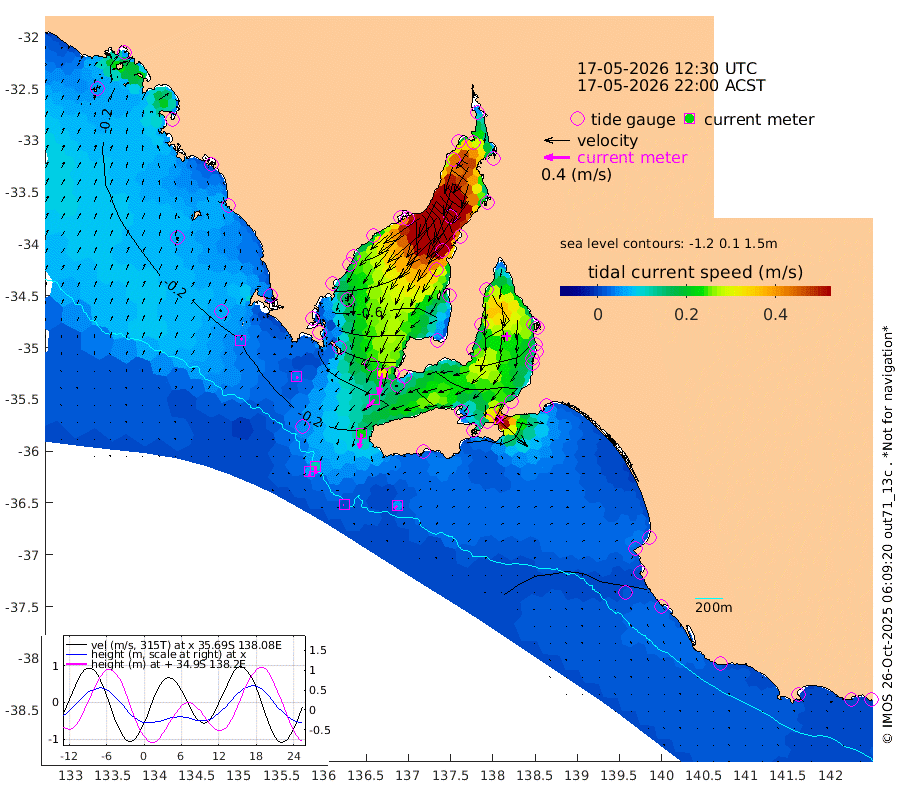 1cm/s -95T +10cm/s rms + 5cm/s 114T. SAM1DS 520m 4cm/s 144T +13cm/s rms + 5cm/s -36T. SAM2CP 100m 12cm/s 179T +21cm/s rms + 18cm/s 142T. SAM3MS 168m 6cm/s -139T +22cm/s rms + 0cm/s -30T. SAM4CY 117m 4cm/s 48T +23cm/s rms + 2cm/s 99T. SAM5CB 94m 17cm/s -139T +8cm/s rms + 3cm/s -172T. SAM6IS 83m 6cm/s -177T +11cm/s rms + 7cm/s 150T. SAM7DS 519m 33cm/s -170T +10cm/s rms + 2cm/s 87T. SAM8SG 47m 23cm/s -170T +20cm/s rms + 12cm/s -168T. NRSKAI 101m -3cm Warrnambool -5cm Port Fairy -6cm Portland -8cm Port Macdonnell -10cm Beachport -10cm Cape Rabelais (off) -9cm Robe -9cm Cape Jaffa -8cm Kingston -19cm Victor Harbor -15cm Vivonne Bay -63cm Kingscote -49cm American River -55cm Penneshaw -51cm Cape Jervis -60cm Second Valley -81cm Port Noarlunga -85cm Port Stanvac -86cm Brighton -90cm Glenelg -94cm Port Adelaide (Outer Harbor) -70cm Angus Inlet (Garden Island) -118cm Ardrossan -108cm Port Vincent -94cm Port Giles -38cm Stenhouse Bay -33cm Althorpe Island -26cm Pondalowie Bay -45cm Point Turton -47cm Port Victoria -46cm Cape Elizabeth -40cm Tiparra Reef Light -22cm Wallaroo -29cm Middle Bank 58cm Port Broughton 62cm Port Pirie 67cm Red Cliff Point (Beacon 5) 33cm Port Bonython 26cm Whyalla 16cm Western Shoal Beacon -36cm Franklin Harbor -70cm Franklin Harbor Entrance Beacon -71cm Arno Bay -76cm Port Neill -68cm Cape Hardy -65cm Tumby Bay -59cm Reevesby Island -56cm Port Lincoln -41cm Taylors Landing -45cm Whalers Bay -35cm Wedge Island Mooring -17cm Shelf Edge Mooring -21cm Coffin Bay Entrance Beacon -18cm Greenly Island -21cm Elliston -19cm Pearson Island -17cm Venus Bay -27cm Blanche Port (Streaky Bay) -27cm Thevenard -16cm St Francis Island