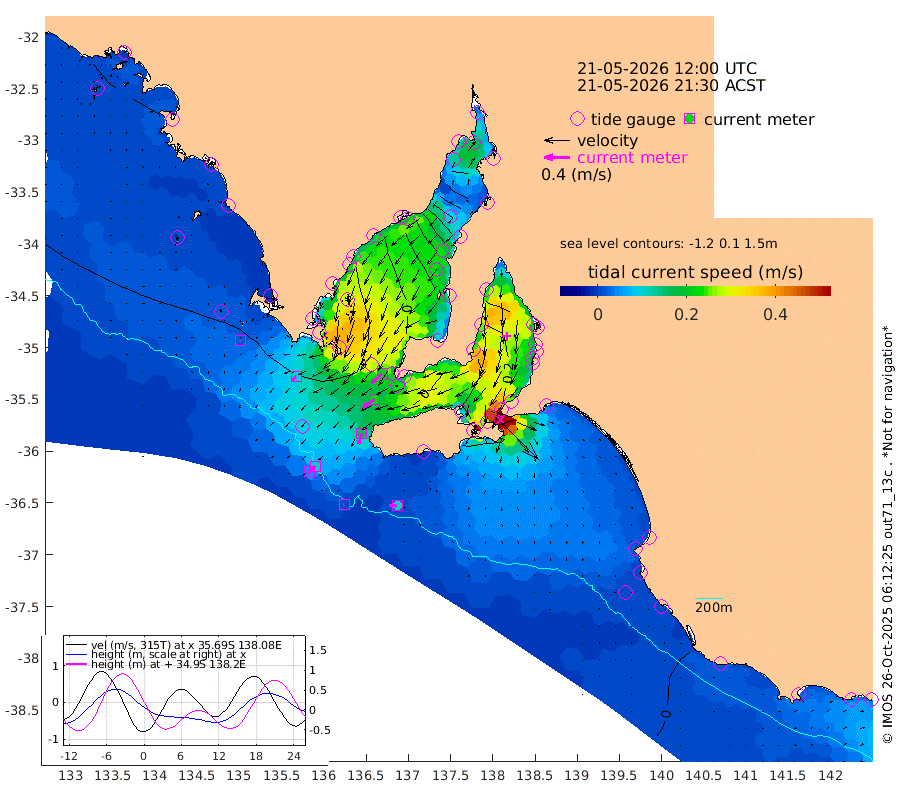 1cm/s -108T +10cm/s rms + 5cm/s 114T. SAM1DS 520m 9cm/s -132T +13cm/s rms + 5cm/s -36T. SAM2CP 100m 11cm/s -134T +21cm/s rms + 18cm/s 142T. SAM3MS 168m 11cm/s -91T +22cm/s rms + 0cm/s -30T. SAM4CY 117m 2cm/s 174T +23cm/s rms + 2cm/s 99T. SAM5CB 94m 22cm/s -124T +8cm/s rms + 3cm/s -172T. SAM6IS 83m 5cm/s -142T +11cm/s rms + 7cm/s 150T. SAM7DS 519m 21cm/s -131T +10cm/s rms + 2cm/s 87T. SAM8SG 47m 17cm/s -164T +20cm/s rms + 12cm/s -168T. NRSKAI 101m 6cm Warrnambool 6cm Port Fairy 5cm Portland 6cm Port Macdonnell 2cm Beachport 3cm Cape Rabelais (off) 2cm Robe 5cm Cape Jaffa 3cm Kingston 1cm Victor Harbor -6cm Vivonne Bay 16cm Kingscote 23cm American River 9cm Penneshaw 18cm Cape Jervis 28cm Second Valley 28cm Port Noarlunga 29cm Port Stanvac 31cm Brighton 30cm Glenelg 35cm Port Adelaide (Outer Harbor) 60cm Angus Inlet (Garden Island) 33cm Ardrossan 19cm Port Vincent 16cm Port Giles -3cm Stenhouse Bay 5cm Althorpe Island 3cm Pondalowie Bay 12cm Point Turton 16cm Port Victoria 21cm Cape Elizabeth 30cm Tiparra Reef Light 56cm Wallaroo 60cm Middle Bank 75cm Port Broughton 134cm Port Pirie 143cm Red Cliff Point (Beacon 5) 121cm Port Bonython 119cm Whyalla 106cm Western Shoal Beacon 45cm Franklin Harbor 17cm Franklin Harbor Entrance Beacon 5cm Arno Bay -3cm Port Neill -4cm Cape Hardy -7cm Tumby Bay -5cm Reevesby Island -12cm Port Lincoln -11cm Taylors Landing 6cm Whalers Bay -1cm Wedge Island Mooring 0cm Shelf Edge Mooring -6cm Coffin Bay Entrance Beacon -5cm Greenly Island -7cm Elliston -7cm Pearson Island -2cm Venus Bay -16cm Blanche Port (Streaky Bay) -18cm Thevenard -10cm St Francis Island