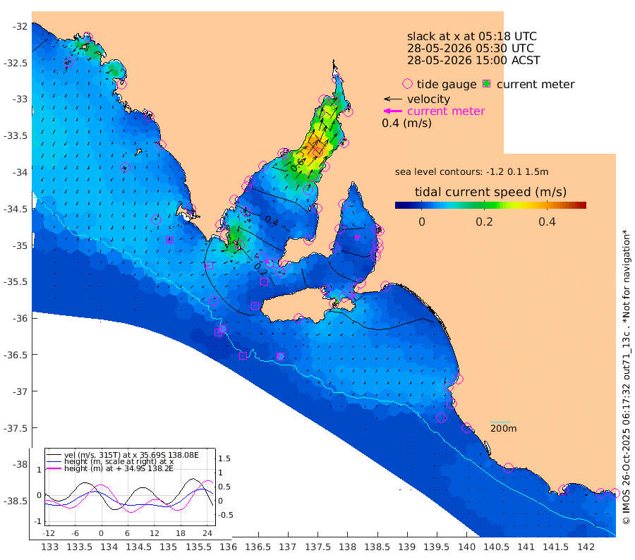 1cm/s -117T +10cm/s rms + 5cm/s 114T. SAM1DS 520m 8cm/s -111T +13cm/s rms + 5cm/s -36T. SAM2CP 100m 5cm/s -69T +21cm/s rms + 18cm/s 142T. SAM3MS 168m 6cm/s -70T +22cm/s rms + 0cm/s -30T. SAM4CY 117m 4cm/s -154T +23cm/s rms + 2cm/s 99T. SAM5CB 94m 1cm/s -57T +8cm/s rms + 3cm/s -172T. SAM6IS 83m 2cm/s -68T +11cm/s rms + 7cm/s 150T. SAM7DS 519m 9cm/s -62T +10cm/s rms + 2cm/s 87T. SAM8SG 47m 2cm/s -62T +20cm/s rms + 12cm/s -168T. NRSKAI 101m 12cm Warrnambool 10cm Port Fairy 10cm Portland 11cm Port Macdonnell 7cm Beachport 8cm Cape Rabelais (off) 9cm Robe 13cm Cape Jaffa 10cm Kingston 13cm Victor Harbor 3cm Vivonne Bay 48cm Kingscote 41cm American River 37cm Penneshaw 40cm Cape Jervis 53cm Second Valley 63cm Port Noarlunga 65cm Port Stanvac 66cm Brighton 68cm Glenelg 73cm Port Adelaide (Outer Harbor) 69cm Angus Inlet (Garden Island) 85cm Ardrossan 67cm Port Vincent 64cm Port Giles 22cm Stenhouse Bay 26cm Althorpe Island 18cm Pondalowie Bay 42cm Point Turton 40cm Port Victoria 44cm Cape Elizabeth 52cm Tiparra Reef Light 56cm Wallaroo 61cm Middle Bank 22cm Port Broughton 51cm Port Pirie 55cm Red Cliff Point (Beacon 5) 50cm Port Bonython 63cm Whyalla 67cm Western Shoal Beacon 60cm Franklin Harbor 60cm Franklin Harbor Entrance Beacon 49cm Arno Bay 48cm Port Neill 44cm Cape Hardy 38cm Tumby Bay 37cm Reevesby Island 28cm Port Lincoln 17cm Taylors Landing 35cm Whalers Bay 21cm Wedge Island Mooring 7cm Shelf Edge Mooring 10cm Coffin Bay Entrance Beacon 4cm Greenly Island 8cm Elliston -2cm Pearson Island 12cm Venus Bay 8cm Blanche Port (Streaky Bay) 5cm Thevenard 0cm St Francis Island