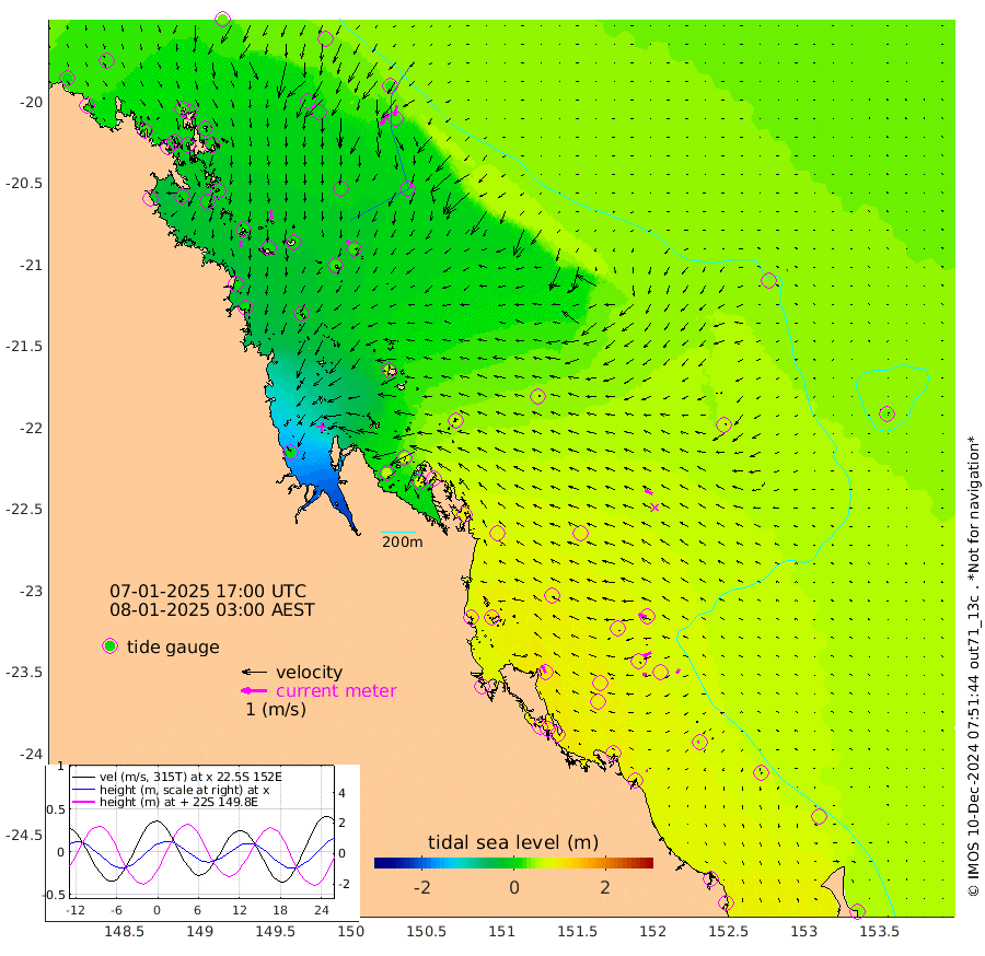 26cm/s -172T +10cm/s rms + 2cm/s 5T. Brampton I 18m 34cm/s 173T +9cm/s rms + 6cm/s 66T. Wigton I 38m 12cm/s -146T +7cm/s rms + 8cm/s 141T. Tern I 47m 41cm/s -165T +7cm/s rms + 12cm/s 54T. N Bugatti Rf 64m 53cm/s -145T +3cm/s rms + 13cm/s 178T. W Bugatti Rf 70m 19cm/s -171T +3cm/s rms + 3cm/s -130T. Creal Rf 69m 33cm/s -77T +7cm/s rms + 4cm/s 2T. North Rf 62m 34cm/s -27T +9cm/s rms + 2cm/s -56T. Cape Capricorn 26m 6cm/s -105T +5cm/s rms + 3cm/s 166T. L Musgrave I 42m 6cm/s -61T +9cm/s rms + 1cm/s -142T. Round Hill Hd 26m 4cm/s -98T +41cm/s rms + 48cm/s 116T. GBRELR 305m 30cm/s -66T +7cm/s rms + 6cm/s 123T. GBRCCH 92m 33cm/s -115T +8cm/s rms + 3cm/s -33T. GBRHIN 45m 15cm/s -98T +4cm/s rms + 2cm/s 41T. GBRHIS 46m 18cm/s -144T +16cm/s rms + 4cm/s -22T. GBROTE 59m 54cm Bell Cay 20cm Holbourne I 21cm Tern I 20cm Bugatti Rf 18cm Creal Rf 25cm White Tip I 76cm North Rf 98cm Rundle I 62cm L Musgrave I 37cm Saumarez Reef 32cm Kennedy Reef 35cm Unnamed Reef No. 2 18cm Abbot Point 15cm Bowen 7cm Tideway Reef 21cm Hayman Island 0cm Square Reef 21cm Double Bay -3cm Molle Island 7cm Cid Harbour 16cm Hook Island 3cm Border Island 1cm Haslewood Island 8cm Shute Harbour 3cm Thomas Island 17cm Credlin Reef 7cm East Repulse Island 1cm Blacksmith Island -9cm Laguna Quays 12cm Carlisle Island (Off) 15cm St. Bees Island 2cm Scawfell Island 19cm Penrith Island 8cm Mackay Outer Harbour 13cm Hay Point 15cm Prudhoe Island 56cm Middle Island (Percy Isles) 59cm Gannet Cay 41cm Elusive Reef 6cm Mcewin Islet 63cm Mumford Island 59cm Osborn Island 66cm Marquis Island 61cm Reef Point 61cm High Peak Island 93cm Port Clinton 91cm Peaked Island 81cm Karamea Bank 92cm Johnson Patch - NW 105cm Rosslyn Bay 106cm Middle Island (Keppel Isles) 112cm Port Alma 76cm Heron Island 85cm One Tree Islet 87cm Polmaise Reef 80cm Tryon Island 91cm Rock Cod Shoal 90cm Gatcombe Head 100cm Gladstone 100cm South Trees (Storm Surge) 85cm Clews Point 76cm Round Hill Head 61cm Lady Elliot Island 63cm Breaksea Spit 81cm Bundaberg (Burnett Heads) 82cm Elliot Heads 47cm Waddy Point (Fraser Island)