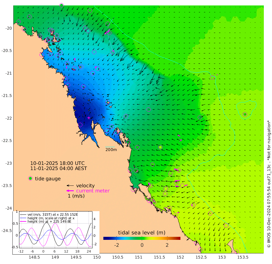 27cm/s -178T +10cm/s rms + 2cm/s 5T. Brampton I 18m 33cm/s -178T +9cm/s rms + 6cm/s 66T. Wigton I 38m 27cm/s -141T +7cm/s rms + 8cm/s 141T. Tern I 47m 50cm/s -154T +7cm/s rms + 12cm/s 54T. N Bugatti Rf 64m 54cm/s -140T +3cm/s rms + 13cm/s 178T. W Bugatti Rf 70m 25cm/s -144T +3cm/s rms + 3cm/s -130T. Creal Rf 69m 67cm/s -75T +7cm/s rms + 4cm/s 2T. North Rf 62m 55cm/s -35T +9cm/s rms + 2cm/s -56T. Cape Capricorn 26m 21cm/s -101T +5cm/s rms + 3cm/s 166T. L Musgrave I 42m 21cm/s -69T +9cm/s rms + 1cm/s -142T. Round Hill Hd 26m 9cm/s -85T +41cm/s rms + 48cm/s 116T. GBRELR 305m 37cm/s -63T +7cm/s rms + 6cm/s 123T. GBRCCH 92m 70cm/s -101T +8cm/s rms + 3cm/s -33T. GBRHIN 45m 44cm/s -92T +4cm/s rms + 2cm/s 41T. GBRHIS 46m 38cm/s -105T +16cm/s rms + 4cm/s -22T. GBROTE 59m -50cm Bell Cay -47cm Holbourne I -130cm Tern I -51cm Bugatti Rf -84cm Creal Rf -25cm White Tip I 40cm North Rf 43cm Rundle I 54cm L Musgrave I 28cm Saumarez Reef -22cm Kennedy Reef -8cm Unnamed Reef No. 2 -50cm Abbot Point -61cm Bowen -83cm Tideway Reef -66cm Hayman Island -110cm Square Reef -70cm Double Bay -99cm Molle Island -102cm Cid Harbour -69cm Hook Island -92cm Border Island -106cm Haslewood Island -98cm Shute Harbour -126cm Thomas Island -119cm Credlin Reef -146cm East Repulse Island -143cm Blacksmith Island -158cm Laguna Quays -141cm Carlisle Island (Off) -159cm St. Bees Island -146cm Scawfell Island -139cm Penrith Island -165cm Mackay Outer Harbour -171cm Hay Point -160cm Prudhoe Island -113cm Middle Island (Percy Isles) -36cm Gannet Cay 33cm Elusive Reef -241cm Mcewin Islet -108cm Mumford Island -140cm Osborn Island -147cm Marquis Island -129cm Reef Point -78cm High Peak Island -22cm Port Clinton -9cm Peaked Island 47cm Karamea Bank 28cm Johnson Patch - NW 12cm Rosslyn Bay 14cm Middle Island (Keppel Isles) -4cm Port Alma 46cm Heron Island 65cm One Tree Islet 51cm Polmaise Reef 37cm Tryon Island 48cm Rock Cod Shoal 32cm Gatcombe Head 21cm Gladstone 33cm South Trees (Storm Surge) 65cm Clews Point 55cm Round Hill Head 58cm Lady Elliot Island 65cm Breaksea Spit 54cm Bundaberg (Burnett Heads) 51cm Elliot Heads 53cm Waddy Point (Fraser Island)