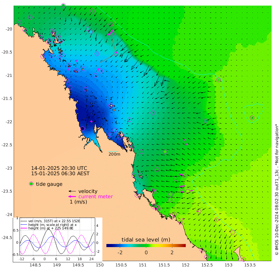 25cm/s 176T +10cm/s rms + 2cm/s 5T. Brampton I 18m 28cm/s -176T +9cm/s rms + 6cm/s 66T. Wigton I 38m 30cm/s -143T +7cm/s rms + 8cm/s 141T. Tern I 47m 49cm/s -150T +7cm/s rms + 12cm/s 54T. N Bugatti Rf 64m 50cm/s -141T +3cm/s rms + 13cm/s 178T. W Bugatti Rf 70m 24cm/s -138T +3cm/s rms + 3cm/s -130T. Creal Rf 69m 69cm/s -74T +7cm/s rms + 4cm/s 2T. North Rf 62m 51cm/s -39T +9cm/s rms + 2cm/s -56T. Cape Capricorn 26m 27cm/s -97T +5cm/s rms + 3cm/s 166T. L Musgrave I 42m 24cm/s -69T +9cm/s rms + 1cm/s -142T. Round Hill Hd 26m 9cm/s -88T +41cm/s rms + 48cm/s 116T. GBRELR 305m 33cm/s -63T +7cm/s rms + 6cm/s 123T. GBRCCH 92m 70cm/s -100T +8cm/s rms + 3cm/s -33T. GBRHIN 45m 45cm/s -91T +4cm/s rms + 2cm/s 41T. GBRHIS 46m 38cm/s -100T +16cm/s rms + 4cm/s -22T. GBROTE 59m -79cm Bell Cay -56cm Holbourne I -159cm Tern I -63cm Bugatti Rf -104cm Creal Rf -33cm White Tip I 20cm North Rf 14cm Rundle I 41cm L Musgrave I 20cm Saumarez Reef -32cm Kennedy Reef -15cm Unnamed Reef No. 2 -54cm Abbot Point -67cm Bowen -95cm Tideway Reef -76cm Hayman Island -123cm Square Reef -89cm Double Bay -102cm Molle Island -107cm Cid Harbour -89cm Hook Island -102cm Border Island -116cm Haslewood Island -111cm Shute Harbour -144cm Thomas Island -144cm Credlin Reef -167cm East Repulse Island -153cm Blacksmith Island -178cm Laguna Quays -168cm Carlisle Island (Off) -187cm St. Bees Island -157cm Scawfell Island -166cm Penrith Island -197cm Mackay Outer Harbour -208cm Hay Point -203cm Prudhoe Island -164cm Middle Island (Percy Isles) -68cm Gannet Cay 24cm Elusive Reef -309cm Mcewin Islet -144cm Mumford Island -181cm Osborn Island -195cm Marquis Island -167cm Reef Point -117cm High Peak Island -72cm Port Clinton -49cm Peaked Island 24cm Karamea Bank -7cm Johnson Patch - NW -26cm Rosslyn Bay -23cm Middle Island (Keppel Isles) -50cm Port Alma 27cm Heron Island 44cm One Tree Islet 27cm Polmaise Reef 19cm Tryon Island 23cm Rock Cod Shoal 2cm Gatcombe Head -17cm Gladstone -1cm South Trees (Storm Surge) 45cm Clews Point 37cm Round Hill Head 44cm Lady Elliot Island 55cm Breaksea Spit 31cm Bundaberg (Burnett Heads) 33cm Elliot Heads 47cm Waddy Point (Fraser Island)