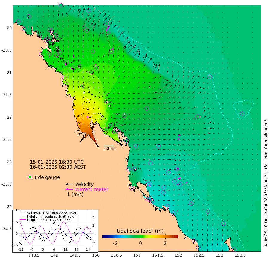 36cm/s -14T +10cm/s rms + 2cm/s 5T. Brampton I 18m 41cm/s -8T +9cm/s rms + 6cm/s 66T. Wigton I 38m 24cm/s 30T +7cm/s rms + 8cm/s 141T. Tern I 47m 48cm/s 15T +7cm/s rms + 12cm/s 54T. N Bugatti Rf 64m 62cm/s 34T +3cm/s rms + 13cm/s 178T. W Bugatti Rf 70m 28cm/s 20T +3cm/s rms + 3cm/s -130T. Creal Rf 69m 33cm/s 89T +7cm/s rms + 4cm/s 2T. North Rf 62m 34cm/s 144T +9cm/s rms + 2cm/s -56T. Cape Capricorn 26m 9cm/s 21T +5cm/s rms + 3cm/s 166T. L Musgrave I 42m 7cm/s 70T +9cm/s rms + 1cm/s -142T. Round Hill Hd 26m 5cm/s 40T +41cm/s rms + 48cm/s 116T. GBRELR 305m 30cm/s 103T +7cm/s rms + 6cm/s 123T. GBRCCH 92m 41cm/s 74T +8cm/s rms + 3cm/s -33T. GBRHIN 45m 25cm/s 82T +4cm/s rms + 2cm/s 41T. GBRHIS 46m 30cm/s 60T +16cm/s rms + 4cm/s -22T. GBROTE 59m -45cm Bell Cay -62cm Holbourne I -3cm Tern I -45cm Bugatti Rf -24cm Creal Rf -61cm White Tip I -90cm North Rf -106cm Rundle I -83cm L Musgrave I -82cm Saumarez Reef -71cm Kennedy Reef -74cm Unnamed Reef No. 2 -60cm Abbot Point -51cm Bowen -31cm Tideway Reef -43cm Hayman Island -33cm Square Reef -39cm Double Bay -34cm Molle Island -23cm Cid Harbour -37cm Hook Island -25cm Border Island -13cm Haslewood Island -22cm Shute Harbour 6cm Thomas Island -11cm Credlin Reef 17cm East Repulse Island 9cm Blacksmith Island 26cm Laguna Quays 8cm Carlisle Island (Off) 17cm St. Bees Island 6cm Scawfell Island 0cm Penrith Island 31cm Mackay Outer Harbour 34cm Hay Point 21cm Prudhoe Island -15cm Middle Island (Percy Isles) -42cm Gannet Cay -73cm Elusive Reef 127cm Mcewin Islet -42cm Mumford Island -4cm Osborn Island 4cm Marquis Island -5cm Reef Point -33cm High Peak Island -72cm Port Clinton -93cm Peaked Island -94cm Karamea Bank -97cm Johnson Patch - NW -98cm Rosslyn Bay -103cm Middle Island (Keppel Isles) -97cm Port Alma -95cm Heron Island -111cm One Tree Islet -104cm Polmaise Reef -90cm Tryon Island -99cm Rock Cod Shoal -94cm Gatcombe Head -96cm Gladstone -101cm South Trees (Storm Surge) -106cm Clews Point -95cm Round Hill Head -82cm Lady Elliot Island -80cm Breaksea Spit -99cm Bundaberg (Burnett Heads) -104cm Elliot Heads -63cm Waddy Point (Fraser Island)