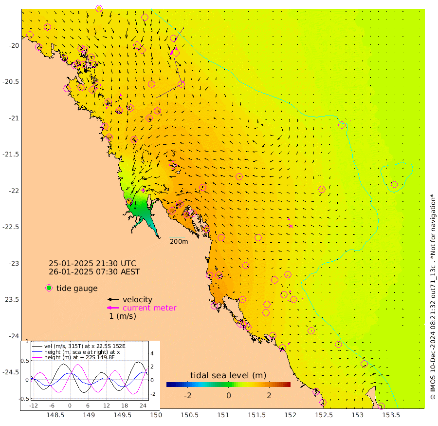 13cm/s -143T +10cm/s rms + 2cm/s 5T. Brampton I 18m 20cm/s 165T +9cm/s rms + 6cm/s 66T. Wigton I 38m 3cm/s -82T +7cm/s rms + 8cm/s 141T. Tern I 47m 21cm/s 175T +7cm/s rms + 12cm/s 54T. N Bugatti Rf 64m 43cm/s -150T +3cm/s rms + 13cm/s 178T. W Bugatti Rf 70m 10cm/s 168T +3cm/s rms + 3cm/s -130T. Creal Rf 69m 9cm/s -172T +7cm/s rms + 4cm/s 2T. North Rf 62m 8cm/s 25T +9cm/s rms + 2cm/s -56T. Cape Capricorn 26m 7cm/s 132T +5cm/s rms + 3cm/s 166T. L Musgrave I 42m 10cm/s 110T +9cm/s rms + 1cm/s -142T. Round Hill Hd 26m 3cm/s -72T +41cm/s rms + 48cm/s 116T. GBRELR 305m 21cm/s -69T +7cm/s rms + 6cm/s 123T. GBRCCH 92m 11cm/s 142T +8cm/s rms + 3cm/s -33T. GBRHIN 45m 8cm/s 97T +4cm/s rms + 2cm/s 41T. GBRHIS 46m 7cm/s 129T +16cm/s rms + 4cm/s -22T. GBROTE 59m 136cm Bell Cay 114cm Holbourne I 154cm Tern I 107cm Bugatti Rf 121cm Creal Rf 100cm White Tip I 106cm North Rf 129cm Rundle I 77cm L Musgrave I 61cm Saumarez Reef 107cm Kennedy Reef 100cm Unnamed Reef No. 2 112cm Abbot Point 115cm Bowen 114cm Tideway Reef 124cm Hayman Island 138cm Square Reef 118cm Double Bay 132cm Molle Island 127cm Cid Harbour 114cm Hook Island 118cm Border Island 113cm Haslewood Island 124cm Shute Harbour 130cm Thomas Island 143cm Credlin Reef 138cm East Repulse Island 141cm Blacksmith Island 136cm Laguna Quays 141cm Carlisle Island (Off) 151cm St. Bees Island 147cm Scawfell Island 159cm Penrith Island 156cm Mackay Outer Harbour 165cm Hay Point 165cm Prudhoe Island 178cm Middle Island (Percy Isles) 121cm Gannet Cay 71cm Elusive Reef 165cm Mcewin Islet 207cm Mumford Island 204cm Osborn Island 204cm Marquis Island 189cm Reef Point 152cm High Peak Island 157cm Port Clinton 157cm Peaked Island 100cm Karamea Bank 132cm Johnson Patch - NW 153cm Rosslyn Bay 155cm Middle Island (Keppel Isles) 166cm Port Alma 99cm Heron Island 113cm One Tree Islet 111cm Polmaise Reef 116cm Tryon Island 108cm Rock Cod Shoal 118cm Gatcombe Head 133cm Gladstone 127cm South Trees (Storm Surge) 101cm Clews Point 90cm Round Hill Head 70cm Lady Elliot Island 74cm Breaksea Spit 91cm Bundaberg (Burnett Heads) 95cm Elliot Heads 58cm Waddy Point (Fraser Island)