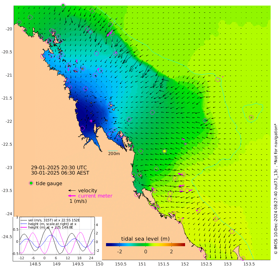 34cm/s 176T +10cm/s rms + 2cm/s 5T. Brampton I 18m 38cm/s 180T +9cm/s rms + 6cm/s 66T. Wigton I 38m 33cm/s -146T +7cm/s rms + 8cm/s 141T. Tern I 47m 62cm/s -155T +7cm/s rms + 12cm/s 54T. N Bugatti Rf 64m 67cm/s -146T +3cm/s rms + 13cm/s 178T. W Bugatti Rf 70m 30cm/s -145T +3cm/s rms + 3cm/s -130T. Creal Rf 69m 75cm/s -75T +7cm/s rms + 4cm/s 2T. North Rf 62m 59cm/s -37T +9cm/s rms + 2cm/s -56T. Cape Capricorn 26m 26cm/s -101T +5cm/s rms + 3cm/s 166T. L Musgrave I 42m 24cm/s -69T +9cm/s rms + 1cm/s -142T. Round Hill Hd 26m 9cm/s -98T +41cm/s rms + 48cm/s 116T. GBRELR 305m 43cm/s -66T +7cm/s rms + 6cm/s 123T. GBRCCH 92m 78cm/s -102T +8cm/s rms + 3cm/s -33T. GBRHIN 45m 49cm/s -92T +4cm/s rms + 2cm/s 41T. GBRHIS 46m 43cm/s -107T +16cm/s rms + 4cm/s -22T. GBROTE 59m -52cm Bell Cay -26cm Holbourne I -135cm Tern I -41cm Bugatti Rf -84cm Creal Rf -9cm White Tip I 50cm North Rf 51cm Rundle I 64cm L Musgrave I 42cm Saumarez Reef -5cm Kennedy Reef 19cm Unnamed Reef No. 2 -22cm Abbot Point -36cm Bowen -69cm Tideway Reef -51cm Hayman Island -103cm Square Reef -50cm Double Bay -75cm Molle Island -87cm Cid Harbour -58cm Hook Island -85cm Border Island -92cm Haslewood Island -85cm Shute Harbour -123cm Thomas Island -116cm Credlin Reef -135cm East Repulse Island -144cm Blacksmith Island -161cm Laguna Quays -136cm Carlisle Island (Off) -168cm St. Bees Island -149cm Scawfell Island -148cm Penrith Island -178cm Mackay Outer Harbour -187cm Hay Point -179cm Prudhoe Island -140cm Middle Island (Percy Isles) -43cm Gannet Cay 51cm Elusive Reef -308cm Mcewin Islet -129cm Mumford Island -164cm Osborn Island -175cm Marquis Island -143cm Reef Point -86cm High Peak Island -30cm Port Clinton -8cm Peaked Island 63cm Karamea Bank 23cm Johnson Patch - NW 16cm Rosslyn Bay 23cm Middle Island (Keppel Isles) -7cm Port Alma 57cm Heron Island 71cm One Tree Islet 56cm Polmaise Reef 47cm Tryon Island 67cm Rock Cod Shoal 36cm Gatcombe Head 20cm Gladstone 37cm South Trees (Storm Surge) 72cm Clews Point 64cm Round Hill Head 68cm Lady Elliot Island 73cm Breaksea Spit 61cm Bundaberg (Burnett Heads) 58cm Elliot Heads 61cm Waddy Point (Fraser Island)