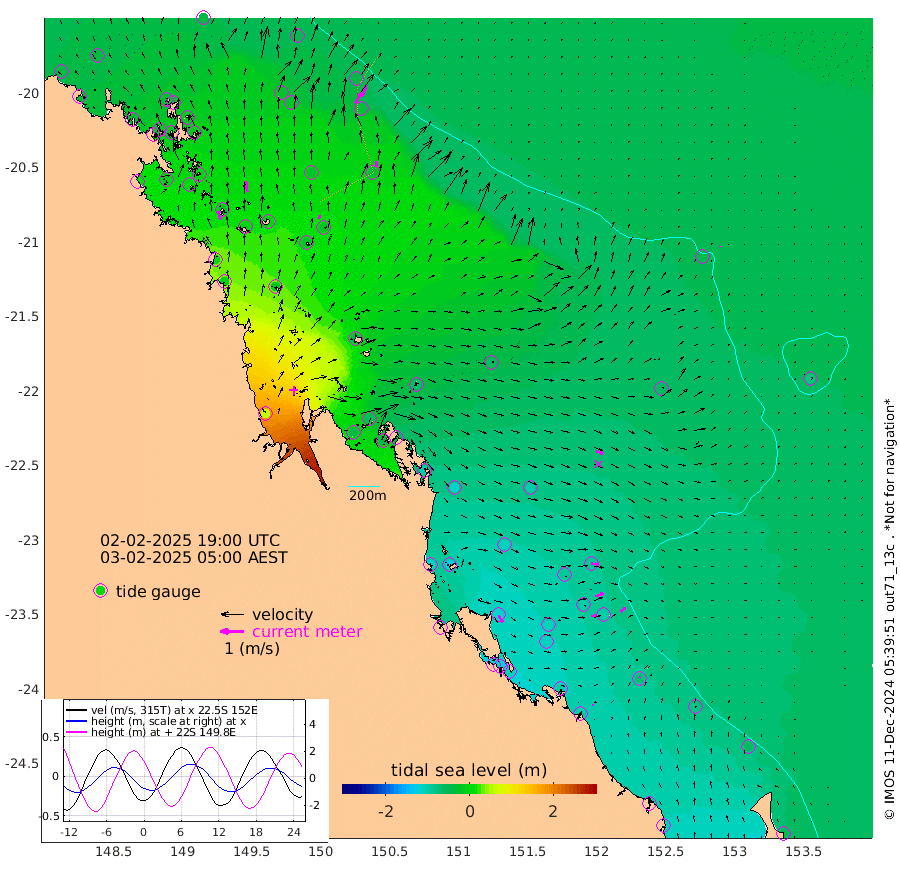 37cm/s -15T +10cm/s rms + 2cm/s 5T. Brampton I 18m 45cm/s -10T +9cm/s rms + 6cm/s 66T. Wigton I 38m 16cm/s 16T +7cm/s rms + 8cm/s 141T. Tern I 47m 48cm/s 15T +7cm/s rms + 12cm/s 54T. N Bugatti Rf 64m 55cm/s 31T +3cm/s rms + 13cm/s 178T. W Bugatti Rf 70m 25cm/s 5T +3cm/s rms + 3cm/s -130T. Creal Rf 69m 31cm/s 95T +7cm/s rms + 4cm/s 2T. North Rf 62m 34cm/s 148T +9cm/s rms + 2cm/s -56T. Cape Capricorn 26m 7cm/s 31T +5cm/s rms + 3cm/s 166T. L Musgrave I 42m 6cm/s 79T +9cm/s rms + 1cm/s -142T. Round Hill Hd 26m 5cm/s 15T +41cm/s rms + 48cm/s 116T. GBRELR 305m 31cm/s 108T +7cm/s rms + 6cm/s 123T. GBRCCH 92m 37cm/s 70T +8cm/s rms + 3cm/s -33T. GBRHIN 45m 20cm/s 81T +4cm/s rms + 2cm/s 41T. GBRHIS 46m 26cm/s 47T +16cm/s rms + 4cm/s -22T. GBROTE 59m -62cm Bell Cay -39cm Holbourne I -26cm Tern I -36cm Bugatti Rf -30cm Creal Rf -42cm White Tip I -89cm North Rf -113cm Rundle I -75cm L Musgrave I -75cm Saumarez Reef -41cm Kennedy Reef -52cm Unnamed Reef No. 2 -38cm Abbot Point -33cm Bowen -23cm Tideway Reef -31cm Hayman Island -28cm Square Reef -32cm Double Bay -11cm Molle Island -18cm Cid Harbour -27cm Hook Island -15cm Border Island -16cm Haslewood Island -18cm Shute Harbour -5cm Thomas Island -26cm Credlin Reef -2cm East Repulse Island 2cm Blacksmith Island 11cm Laguna Quays -15cm Carlisle Island (Off) -9cm St. Bees Island -6cm Scawfell Island -23cm Penrith Island 1cm Mackay Outer Harbour -3cm Hay Point -18cm Prudhoe Island -52cm Middle Island (Percy Isles) -62cm Gannet Cay -52cm Elusive Reef 59cm Mcewin Islet -64cm Mumford Island -40cm Osborn Island -47cm Marquis Island -45cm Reef Point -67cm High Peak Island -101cm Port Clinton -117cm Peaked Island -99cm Karamea Bank -108cm Johnson Patch - NW -119cm Rosslyn Bay -125cm Middle Island (Keppel Isles) -128cm Port Alma -95cm Heron Island -101cm One Tree Islet -105cm Polmaise Reef -89cm Tryon Island -108cm Rock Cod Shoal -106cm Gatcombe Head -116cm Gladstone -116cm South Trees (Storm Surge) -101cm Clews Point -94cm Round Hill Head -76cm Lady Elliot Island -65cm Breaksea Spit -100cm Bundaberg (Burnett Heads) -105cm Elliot Heads -53cm Waddy Point (Fraser Island)