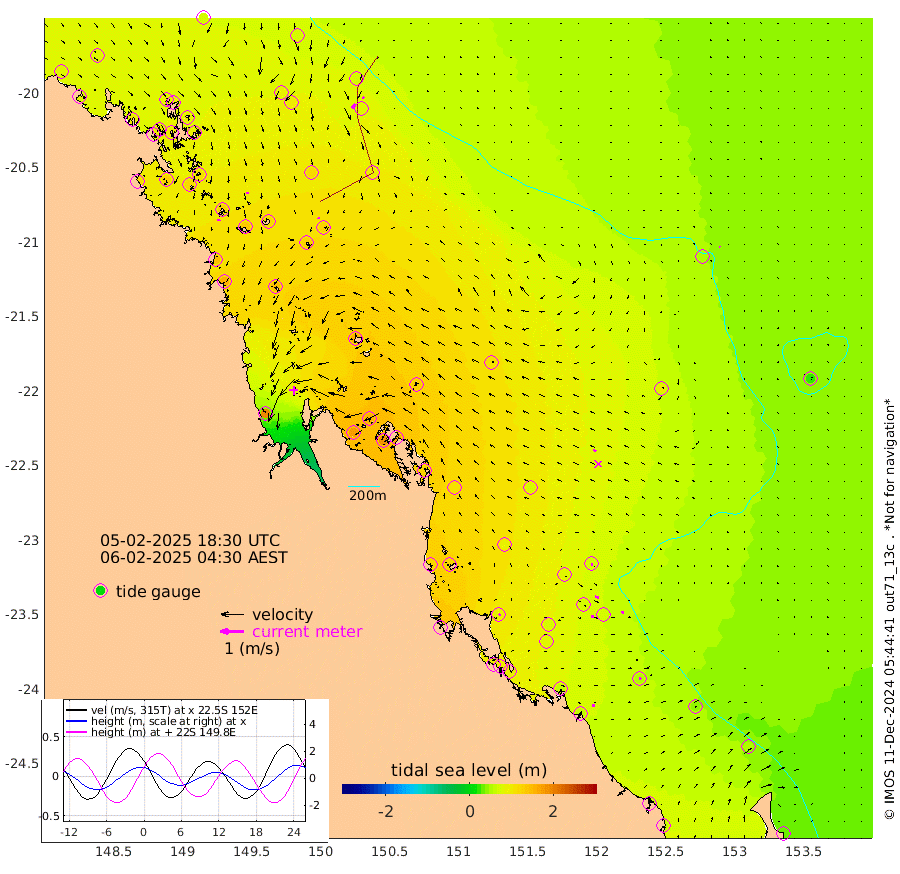 12cm/s -96T +10cm/s rms + 2cm/s 5T. Brampton I 18m 8cm/s 165T +9cm/s rms + 6cm/s 66T. Wigton I 38m 6cm/s -13T +7cm/s rms + 8cm/s 141T. Tern I 47m 9cm/s 150T +7cm/s rms + 12cm/s 54T. N Bugatti Rf 64m 22cm/s -151T +3cm/s rms + 13cm/s 178T. W Bugatti Rf 70m 4cm/s 139T +3cm/s rms + 3cm/s -130T. Creal Rf 69m 8cm/s 128T +7cm/s rms + 4cm/s 2T. North Rf 62m 8cm/s 57T +9cm/s rms + 2cm/s -56T. Cape Capricorn 26m 9cm/s 106T +5cm/s rms + 3cm/s 166T. L Musgrave I 42m 10cm/s 100T +9cm/s rms + 1cm/s -142T. Round Hill Hd 26m 3cm/s -34T +41cm/s rms + 48cm/s 116T. GBRELR 305m 13cm/s -63T +7cm/s rms + 6cm/s 123T. GBRCCH 92m 15cm/s 106T +8cm/s rms + 3cm/s -33T. GBRHIN 45m 13cm/s 96T +4cm/s rms + 2cm/s 41T. GBRHIS 46m 12cm/s 108T +16cm/s rms + 4cm/s -22T. GBROTE 59m 107cm Bell Cay 80cm Holbourne I 129cm Tern I 78cm Bugatti Rf 94cm Creal Rf 68cm White Tip I 72cm North Rf 91cm Rundle I 49cm L Musgrave I 26cm Saumarez Reef 75cm Kennedy Reef 70cm Unnamed Reef No. 2 79cm Abbot Point 83cm Bowen 86cm Tideway Reef 91cm Hayman Island 94cm Square Reef 98cm Double Bay 101cm Molle Island 96cm Cid Harbour 92cm Hook Island 89cm Border Island 91cm Haslewood Island 99cm Shute Harbour 109cm Thomas Island 118cm Credlin Reef 130cm East Repulse Island 114cm Blacksmith Island 120cm Laguna Quays 129cm Carlisle Island (Off) 135cm St. Bees Island 115cm Scawfell Island 130cm Penrith Island 141cm Mackay Outer Harbour 150cm Hay Point 142cm Prudhoe Island 152cm Middle Island (Percy Isles) 100cm Gannet Cay 49cm Elusive Reef 195cm Mcewin Islet 155cm Mumford Island 174cm Osborn Island 183cm Marquis Island 166cm Reef Point 128cm High Peak Island 129cm Port Clinton 111cm Peaked Island 71cm Karamea Bank 93cm Johnson Patch - NW 116cm Rosslyn Bay 115cm Middle Island (Keppel Isles) 129cm Port Alma 66cm Heron Island 69cm One Tree Islet 72cm Polmaise Reef 80cm Tryon Island 81cm Rock Cod Shoal 86cm Gatcombe Head 101cm Gladstone 94cm South Trees (Storm Surge) 63cm Clews Point 58cm Round Hill Head 43cm Lady Elliot Island 48cm Breaksea Spit 61cm Bundaberg (Burnett Heads) 59cm Elliot Heads 34cm Waddy Point (Fraser Island)