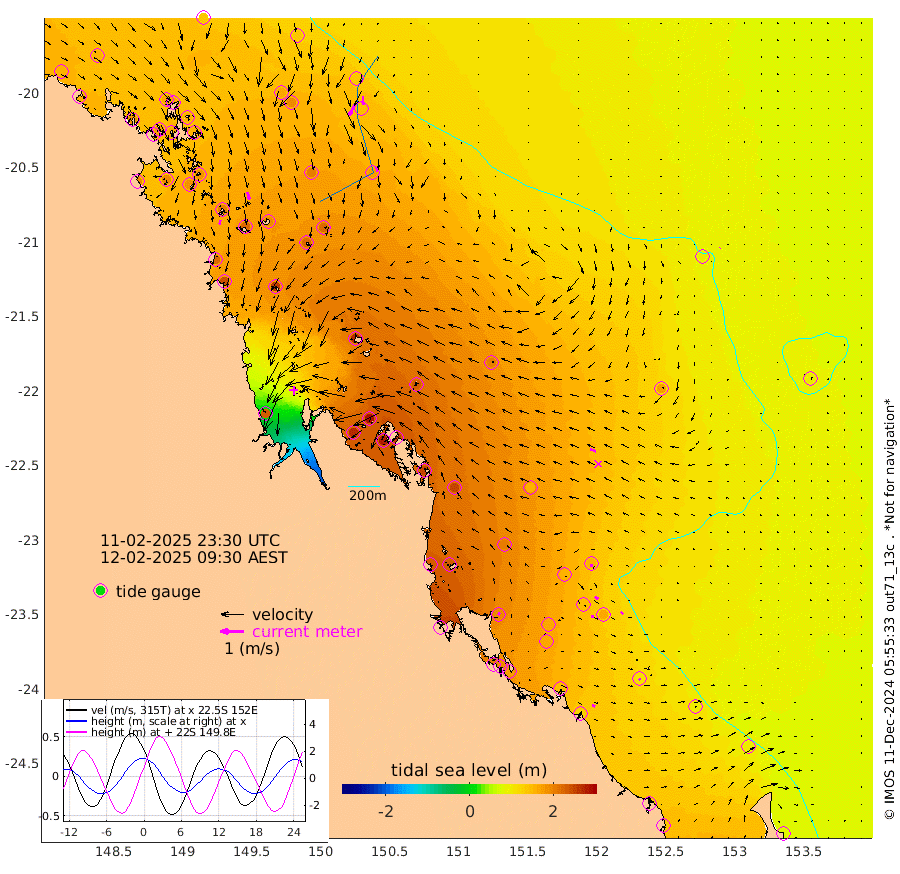 20cm/s -168T +10cm/s rms + 2cm/s 5T. Brampton I 18m 33cm/s 164T +9cm/s rms + 6cm/s 66T. Wigton I 38m 1cm/s 26T +7cm/s rms + 8cm/s 141T. Tern I 47m 33cm/s 176T +7cm/s rms + 12cm/s 54T. N Bugatti Rf 64m 58cm/s -155T +3cm/s rms + 13cm/s 178T. W Bugatti Rf 70m 18cm/s 161T +3cm/s rms + 3cm/s -130T. Creal Rf 69m 14cm/s 176T +7cm/s rms + 4cm/s 2T. North Rf 62m 12cm/s 23T +9cm/s rms + 2cm/s -56T. Cape Capricorn 26m 9cm/s 137T +5cm/s rms + 3cm/s 166T. L Musgrave I 42m 15cm/s 115T +9cm/s rms + 1cm/s -142T. Round Hill Hd 26m 1cm/s -145T +41cm/s rms + 48cm/s 116T. GBRELR 305m 27cm/s -71T +7cm/s rms + 6cm/s 123T. GBRCCH 92m 17cm/s 132T +8cm/s rms + 3cm/s -33T. GBRHIN 45m 14cm/s 99T +4cm/s rms + 2cm/s 41T. GBRHIS 46m 13cm/s 134T +16cm/s rms + 4cm/s -22T. GBROTE 59m 198cm Bell Cay 158cm Holbourne I 223cm Tern I 150cm Bugatti Rf 174cm Creal Rf 136cm White Tip I 152cm North Rf 190cm Rundle I 108cm L Musgrave I 99cm Saumarez Reef 137cm Kennedy Reef 136cm Unnamed Reef No. 2 151cm Abbot Point 154cm Bowen 161cm Tideway Reef 167cm Hayman Island 196cm Square Reef 179cm Double Bay 174cm Molle Island 164cm Cid Harbour 165cm Hook Island 151cm Border Island 157cm Haslewood Island 171cm Shute Harbour 181cm Thomas Island 203cm Credlin Reef 191cm East Repulse Island 179cm Blacksmith Island 188cm Laguna Quays 203cm Carlisle Island (Off) 216cm St. Bees Island 194cm Scawfell Island 224cm Penrith Island 222cm Mackay Outer Harbour 237cm Hay Point 256cm Prudhoe Island 268cm Middle Island (Percy Isles) 178cm Gannet Cay 95cm Elusive Reef 229cm Mcewin Islet 285cm Mumford Island 268cm Osborn Island 280cm Marquis Island 254cm Reef Point 227cm High Peak Island 246cm Port Clinton 247cm Peaked Island 151cm Karamea Bank 200cm Johnson Patch - NW 229cm Rosslyn Bay 234cm Middle Island (Keppel Isles) 251cm Port Alma 146cm Heron Island 160cm One Tree Islet 163cm Polmaise Reef 157cm Tryon Island 162cm Rock Cod Shoal 177cm Gatcombe Head 201cm Gladstone 191cm South Trees (Storm Surge) 143cm Clews Point 131cm Round Hill Head 103cm Lady Elliot Island 95cm Breaksea Spit 135cm Bundaberg (Burnett Heads) 138cm Elliot Heads 78cm Waddy Point (Fraser Island)