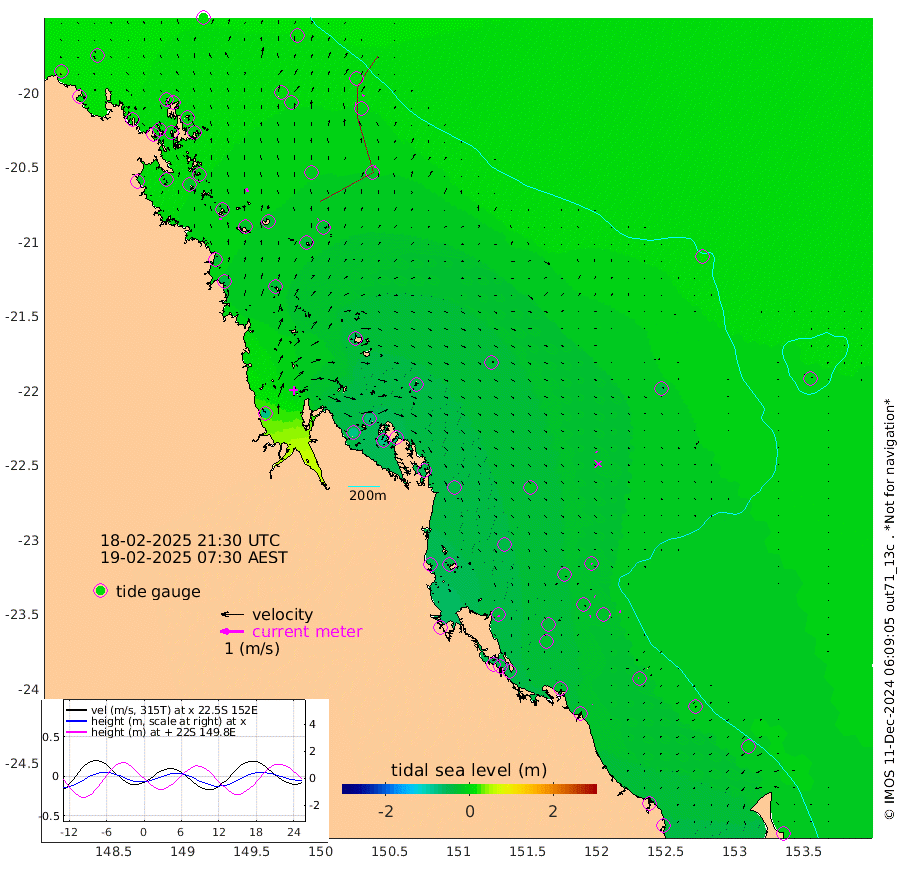 6cm/s -11T +10cm/s rms + 2cm/s 5T. Brampton I 18m 13cm/s -7T +9cm/s rms + 6cm/s 66T. Wigton I 38m 3cm/s -128T +7cm/s rms + 8cm/s 141T. Tern I 47m 7cm/s 22T +7cm/s rms + 12cm/s 54T. N Bugatti Rf 64m 4cm/s 85T +3cm/s rms + 13cm/s 178T. W Bugatti Rf 70m 5cm/s -61T +3cm/s rms + 3cm/s -130T. Creal Rf 69m 3cm/s 116T +7cm/s rms + 4cm/s 2T. North Rf 62m 6cm/s 170T +9cm/s rms + 2cm/s -56T. Cape Capricorn 26m 4cm/s -87T +5cm/s rms + 3cm/s 166T. L Musgrave I 42m 0cm/s -37T +9cm/s rms + 1cm/s -142T. Round Hill Hd 26m 0cm/s 86T +41cm/s rms + 48cm/s 116T. GBRELR 305m 4cm/s 144T +7cm/s rms + 6cm/s 123T. GBRCCH 92m 3cm/s -56T +8cm/s rms + 3cm/s -33T. GBRHIN 45m 4cm/s -95T +4cm/s rms + 2cm/s 41T. GBRHIS 46m 5cm/s -74T +16cm/s rms + 4cm/s -22T. GBROTE 59m -33cm Bell Cay 14cm Holbourne I -29cm Tern I -2cm Bugatti Rf -17cm Creal Rf 7cm White Tip I -21cm North Rf -33cm Rundle I -12cm L Musgrave I 0cm Saumarez Reef 11cm Kennedy Reef 16cm Unnamed Reef No. 2 19cm Abbot Point 16cm Bowen 9cm Tideway Reef 5cm Hayman Island -1cm Square Reef 15cm Double Bay 11cm Molle Island -4cm Cid Harbour 10cm Hook Island -3cm Border Island -3cm Haslewood Island 2cm Shute Harbour -9cm Thomas Island -15cm Credlin Reef -7cm East Repulse Island -22cm Blacksmith Island -16cm Laguna Quays -15cm Carlisle Island (Off) -24cm St. Bees Island -29cm Scawfell Island -36cm Penrith Island -33cm Mackay Outer Harbour -40cm Hay Point -35cm Prudhoe Island -62cm Middle Island (Percy Isles) -40cm Gannet Cay 10cm Elusive Reef -83cm Mcewin Islet -67cm Mumford Island -77cm Osborn Island -82cm Marquis Island -67cm Reef Point -49cm High Peak Island -49cm Port Clinton -39cm Peaked Island -16cm Karamea Bank -43cm Johnson Patch - NW -47cm Rosslyn Bay -41cm Middle Island (Keppel Isles) -60cm Port Alma -23cm Heron Island -22cm One Tree Islet -31cm Polmaise Reef -24cm Tryon Island -21cm Rock Cod Shoal -38cm Gatcombe Head -49cm Gladstone -43cm South Trees (Storm Surge) -25cm Clews Point -24cm Round Hill Head -9cm Lady Elliot Island -8cm Breaksea Spit -26cm Bundaberg (Burnett Heads) -32cm Elliot Heads -6cm Waddy Point (Fraser Island)