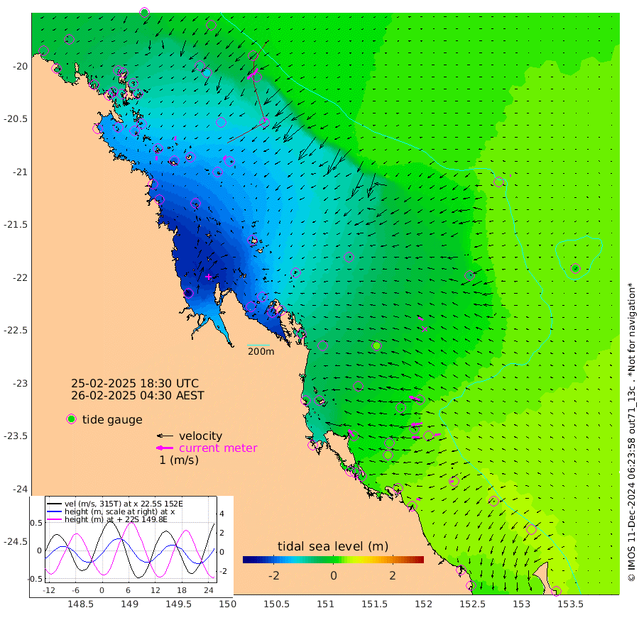 24cm/s -180T +10cm/s rms + 2cm/s 5T. Brampton I 18m 25cm/s -172T +9cm/s rms + 6cm/s 66T. Wigton I 38m 29cm/s -143T +7cm/s rms + 8cm/s 141T. Tern I 47m 46cm/s -148T +7cm/s rms + 12cm/s 54T. N Bugatti Rf 64m 43cm/s -141T +3cm/s rms + 13cm/s 178T. W Bugatti Rf 70m 23cm/s -133T +3cm/s rms + 3cm/s -130T. Creal Rf 69m 67cm/s -73T +7cm/s rms + 4cm/s 2T. North Rf 62m 51cm/s -39T +9cm/s rms + 2cm/s -56T. Cape Capricorn 26m 20cm/s -100T +5cm/s rms + 3cm/s 166T. L Musgrave I 42m 23cm/s -67T +9cm/s rms + 1cm/s -142T. Round Hill Hd 26m 8cm/s -87T +41cm/s rms + 48cm/s 116T. GBRELR 305m 33cm/s -63T +7cm/s rms + 6cm/s 123T. GBRCCH 92m 69cm/s -98T +8cm/s rms + 3cm/s -33T. GBRHIN 45m 44cm/s -92T +4cm/s rms + 2cm/s 41T. GBRHIS 46m 38cm/s -101T +16cm/s rms + 4cm/s -22T. GBROTE 59m -79cm Bell Cay -54cm Holbourne I -158cm Tern I -63cm Bugatti Rf -106cm Creal Rf -33cm White Tip I 19cm North Rf 13cm Rundle I 39cm L Musgrave I 16cm Saumarez Reef -32cm Kennedy Reef -9cm Unnamed Reef No. 2 -50cm Abbot Point -62cm Bowen -91cm Tideway Reef -77cm Hayman Island -130cm Square Reef -75cm Double Bay -94cm Molle Island -109cm Cid Harbour -80cm Hook Island -102cm Border Island -110cm Haslewood Island -106cm Shute Harbour -141cm Thomas Island -139cm Credlin Reef -150cm East Repulse Island -160cm Blacksmith Island -173cm Laguna Quays -153cm Carlisle Island (Off) -188cm St. Bees Island -167cm Scawfell Island -168cm Penrith Island -192cm Mackay Outer Harbour -203cm Hay Point -202cm Prudhoe Island -164cm Middle Island (Percy Isles) -64cm Gannet Cay 31cm Elusive Reef -289cm Mcewin Islet -166cm Mumford Island -188cm Osborn Island -197cm Marquis Island -167cm Reef Point -112cm High Peak Island -66cm Port Clinton -56cm Peaked Island 30cm Karamea Bank -12cm Johnson Patch - NW -25cm Rosslyn Bay -22cm Middle Island (Keppel Isles) -47cm Port Alma 27cm Heron Island 36cm One Tree Islet 22cm Polmaise Reef 16cm Tryon Island 33cm Rock Cod Shoal 4cm Gatcombe Head -14cm Gladstone 2cm South Trees (Storm Surge) 39cm Clews Point 35cm Round Hill Head 45cm Lady Elliot Island 52cm Breaksea Spit 32cm Bundaberg (Burnett Heads) 29cm Elliot Heads 43cm Waddy Point (Fraser Island)